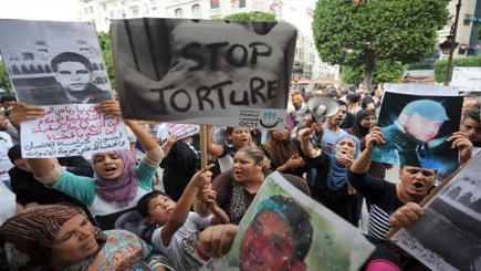 تظاهر عشرات التونسيين اليوم الاربعاء امام مقر وزارة الداخلية في العاصمة تونس للتنديد بـ "استمرار" تعرض موقوفين للتعذيب في مراكز أمن و"إفلات الشرطة من العقاب".ورفع المشاركون في التظاهرة التي دعت اليها أكثر من 20 جمعية ومنظمة حقوقية غير حكومية، لافتة كُتِب عليها "يسقط الجلادون، ويسقط حلفاؤهم في القضاء".