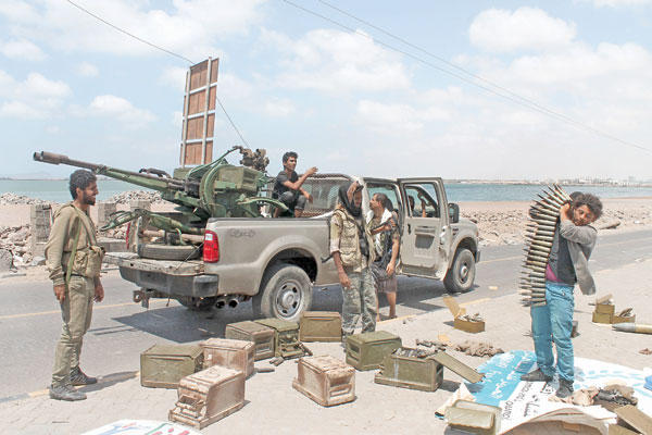 استمر أمس تدهور وضع قوى جماعة الحوثي بفعل الضربات الجوية وتراجعها أمام المقاومة الشعبية، ما ظهر جلياً في خسارتها مدينة تعز بالكامل وطريق الامداد إلى صنعاء، في وقت أمر العاهل السعودي الملك سلمان بن عبدالعزيز قوات الحرس الوطني بالمشاركة في عملية «عاصفة الحزم»، في خطوة تعكس تماسك الأسرة الحاكمة واجتماع الكلمة في كل المواقع.وعلى الفور تلقى وزير الحرس الوطني الأمير متعب بن عبدالله التكليف بالتأكيد على جاهزية قواته، التي تضم نحو 100 ألف عنصر أغلبهم من أبناء القبائل.