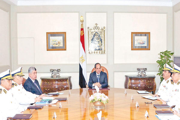 وقال مصدر سياسي لـ«الجريدة»: «إن الرئيس السيسي ليس راضياً عن أداء عدد من الوزراء، وخصوصاً في قطاع الخدمات، وهو ما قد يؤدي إلى تعديل حكومي يشمل أربعة وزراء على الأقل».وانفجرت مساء أمس الأول قنبلة في قطار سكك حديدية عندما كان متوقفاً في محطة مدينة منوف التابعة لمحافظة المنوفية، ما أسفر عن مصرع أربعة أشخاص بينهم شرطيان، كما انفجرت قنبلة أخرى، صباح أمس، قرب قصر القبة الرئاسي، ما أدى إلى إصابة مواطنين.وفي خطوة ذات دلالة عقد المجلس الأعلى للشرطة اجتماعاً طارئاً، أمس، برئاسة السيسي الذي وجّه لضرورة «تفعيل الاستراتيجيات الأمنية الجديدة والتنسيق بين مختلف الأجهزة لمواجهة تحدي الإرهاب»، مشيراً خلال الاجتماع إلى أن «الدولة المصرية تواجه تحديات تستهدف وجودها ذاته». وقال المتحدث باسم رئاسة الجمهورية، السفير علاء يوسف، إن جزءاً كبيراً من وقت الاجتماع خصص لمناقشة زيادة حوادث الطرق وكيفية مواجهتها. وكان حادث مرور قد حصد، الأربعاء، أرواح 18 شخصاً معظمهم أطفال.