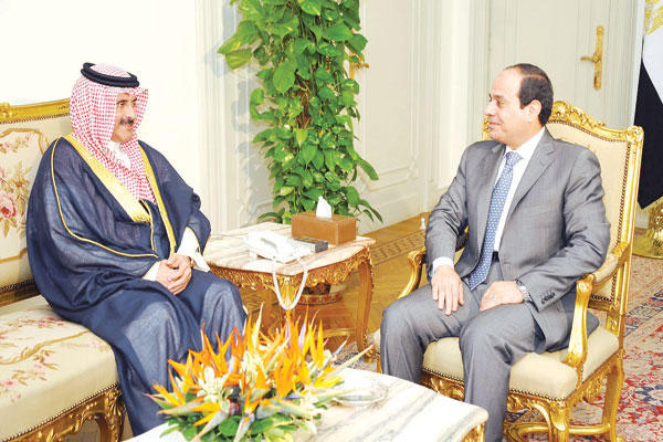 وشدد على أهمية تكاتف الدول العربية وترابطها في المرحلة الفارقة والعمل على إعادة بناء الدول العربية المتضررة والحيلولة دون إضعاف دول عربية اخرى. وفيما يلي نص اللقاء:• كيف تقيمون فخامتكم العلاقات المصرية الكويتية؟ وما هي رؤيتكم نحو تعزيزها في المستقبل القريب؟ وكيف كان لقاؤكم مع أخيكم سمو أمير البلاد الشيخ صباح الأحمد خلال حفل تنصيبكم في القاهرة؟- إن العلاقات الأخوية والتاريخية بين مصر والكويت هي علاقات عريقة ووطيدة واستثنائية، إذ قدمت هذه العلاقات الثنائية دائماً نموذجاً لعلاقات الأخوة ووحدة المصير بين الأشقاء العرب اختلطت خلالها دماء الشهداء من مصر والكويت وستبقى العلاقات المصرية - الكويتية علامة مضيئة للتعاون والتنسيق بين الأقطار العربية، وسنعمل معا لتعزيزها وتدعيمها حفاظا على مصالحنا المشتركة.لقد ساد لقائي مع أخي سمو الأمير مناخ من الأخوة الحقيقية والتفاهم والحرص المشترك على دعم العلاقات الثنائية مع الكويت الشقيقة ودائما ما تسود اللقاءات المصرية - الكويتية الأجواء الودية والحرص على تطوير العلاقات بين البلدين وبشكل خاص في المجالات التجارية والاقتصادية والاستثمارية، حيث تحتل الكويت المرتبة الخامسة ضمن قائمة الدول الأجنبية المستثمرة في مصر والثالثة عربياً وسنعمل معا على دعم هذه الاستثمارات وتنميتها وتذليل أي عقبات تواجهها بما يحقق المصالح المصرية والكويتية.كما أود اغتنام هذه المناسبة لتجديد الإعراب عن تقدير الشعب والحكومة المصرية للدعم السياسي والاقتصادي الكويتي لمصر منذ ثورة 30 يونيو، وحتى الآن وهو ما يؤكد إيمان الجانبين بوحدة المصير المشترك».• هل هناك نية لدى فخامتكم لزيارة بلدكم الثاني الكويت؟- دائما ما تكون النية منعقدة لزيارة الدول العربية الشقيقة وأتطلع إلى زيارة الكويت للالتقاء بسمو الأمير والتباحث بشأن مختلف القضايا ذات الاهتمام المشترك على الصعيدين الإقليمي والدولي وتعزيز العلاقات الثنائية المتميزة بين البلدين.تظاهرات• شهدت الساحة المصرية خلال الأشهر الماضية استقرارا ملحوظا لكن هناك بعض التظاهرات والأعمال التي تعكر صفو المجتمع إلى متى تستمر هذه الأعمال؟- هذه التظاهرات لا تمثل الغالبية العظمى من المصريين، ولكنها تمثل فئة قليلة للغاية تحاول الخروج عن النظام وتأليب الرأي العام، لكن أؤكد لك أن الشعب المصري واع لمثل هذه المحاولات ولن يستجيب لها، وأود أن أطمئنك وأطمئن الشعب المصري وكافة الشعوب العربية المحبة للسلام والاستقرار، أن الحكومة المصرية وبمساندة الشعب المصري تنتهج سياسة (النفس الطويل) وسنظل صامدين، شعبا وجيشا، يدا واحدة تذود عن الوطن وتحمي أرضه.. وبإذن الله عن قريب سنستأصل جذور الإرهاب وسننعم بكل الاستقرار والهدوء في مصر وستظل وطن الأمان وسيبقى أهلها في رباط إلى يوم القيامة».تحديات داخلية وخارجية• تواجه فخامتكم مسؤوليات كبيرة وتحديات أكبر داخلية وخارجية، هل يمكن التعرف على رؤيتكم تجاه الملفات التالية:أولا: الأوضاع الاقتصادية التي تعاني منها مصر منذ 25 يناير 2011 في ضوء تطلعات شعبية كبيرة وخطط تنموية طموحة؟- حقا لقد تراكمت مشكلات اقتصادية على مدار عقود طويلة وترافقت معها زيادة سكانية متنامية بمعدلات مرتفعة ولكن هذه المشكلات لن تثنينا عن مواصلة خطط التنمية الشاملة في مصر، ولذلك فلقد توجهنا في مصر نحو المشروعات الاقتصادية العملاقة التي من شأنها إحداث نقلة نوعية في الاقتصاد المصري ويأتي في مقدمتها مشروع حفر قناة السويس الجديدة وتنمية محورها والعمل فيه - بفضل الله - يجري على قدم وساق طامحين الى أن ننجز مشروع القناة الجديدة في عام واحد بدلا من الفترة التي توقعها الخبراء والتي تراوحت فيما بين ثلاثة إلى خمسة أعوام، فنحن في سباق مع الزمن وبالتوازي مع هذا المشروع فقد أعطيت إشارة البدء في إنشاء مركز لوجيستي عالمي لتخزين وتداول وتجارة الحبوب والغلال في ميناء دمياط ويعد الأول في سلسلة من مشروعات مماثلة سيتم تنفيذها، وع