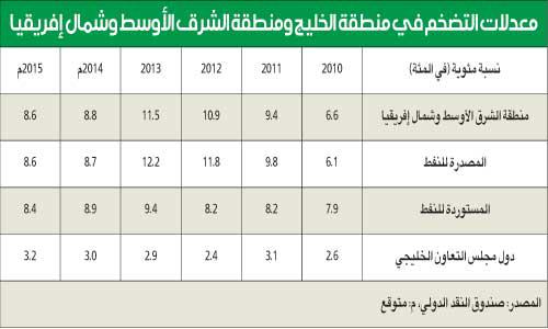 تشير التوقعات المستقبلية إلى نمو الاقتصاد في منطقة الشرق الأوسط وشمال إفريقيا بنسبة تصل إلى نحو 3.2 في المئة في 2014، وذلك بدعم من نمو القطاعات غير النفطية مقارنة بأدنى نسبة نمو شهدتها تلك المنطقة في عام 2013، حيث لم تتخط الـ2.2 في المئة، إلا أن النمو في 2014 لا يزال أقل من متوسط النمو البالغ 4 في المئة، التي سجلتها منطقة الشرق الأوسط وشمال إفريقيا خلال العقود الأربعة الماضية. وقال تحليل للعوامل التي أدت إلى تراجع النمو في عام 2013، أصدرته إدارة بحوث الاستثمار في شركة مشاريع الكويت الاستثمارية لإدارة الأصول (كامكو)، إن الصعوبات وارتفاع حدة الاضطرابات الجغرافية والجيوسياسية في الدول المصدرة للنفط مثل ليبيا وإيران وسورية، بالإضافة إلى المرحلة الانتقالية من التقلبات السياسية والاقتصادية التي شهدتها كل من مصر والأردن كان لها أثر سلبي على معدلات النمو الاقتصادية في تلك الفترة. كما كان لانخفاض الطلب العالمي على النفط الأثر السلبي على النمو الاقتصادي في دول مجلس التعاون الخليجي بالتزامن مع رفع منسوب الانتاج من قبل الدول خارج منظمة «أوبك».معدلات التضخمولا تزال معدلات التضخم في منطقة الشرق الأوسط وشمال إفريقيا عند أعلى مستوياتها، حيث وصلت في 2013 إلى 11.5 في المئة، وذلك بفعل التقلبات الجيوسياسية في الدول المستوردة للنفط مثل مصر التي دفعت نحو ارتفاع أسعار الطاقة. من جهة أخرى، كان الاستقرار السياسي في منطقة الخليج كفيلا بالحفاظ على معدل التضخم دون الـ3 في المئة في 2013، وذلك بالرغم من انتعاش وتعافي السوق العقاري وازدياد الطلب على الاسكان.وتشير توقعات صندوق النقد الدولي إلى أن معدلات التضخم ستصل في 2014 إلى 8.8 في المئة في دول الشرق الأوسط وشمال إفريقيا، بينما لن تتخطى حاجز الـ3 في المئة لدول مجلس التعاون الخليجي.دول «التعاون»شهدت دول مجلس التعاون الخليجية مجتمعة تراجعاً في نمو الناتج المحلي الإجمالي حيث بلغ 4.1 في المئة في 2013 مقارنة مع 6.4 في المئة في عام 2012، ويعود السبب في هذا التراجع إلى انخفاض الطلب على النفط وبالمقابل ارتفاع حجم الانتاج النفطي من الدول خارج منظمة «أوبك» العالمية أدى إلى استقرار حجم الانتاج النفطي في دول الخليج عند نفس المستوى. بينما واصل القطاع غير النفطي أداءه القوي والمتنامي حيث من المتوقع أن يسجل نمو بنسبة 5.7 في المئة خلال 2014، بعد أن تمكن من تحقيق نسبة نمو وصلت إلى 5.4 في المئة في عام 2013، وذلك مع تواصل الدعم القوي من الحكومات الخليجية بهدف تنويع الاقتصاد ودعم القطاعات غير النفطية.القطاع غير النفطيومن المتوقع أن يستمر النمو في القطاع غير النفطي عبر زيادة الانفاق على البنية التحتية خلال فترة تمتد إلى حدث دبي إكسبو في عام 2020 وكأس العالم في قطر عام 2022، بالإضافة إلى انتعاش فعلي في قطاعي السياحة والعقار في دولة الإمارات العربية المتحدة.إن تطور القطاع غير النفطي جعله يبرز كمحرك رئيسي لدفع النمو الاقتصادي في منطقة الخليج التي من المتوقع أن تحقق نمواً في الناتج المحلي الإجمالي يصل إلى 4.2 في المئة في 2014.فضلاً عن ذلك، لا تزال السياسة المالية العامة المتبعة من دول مجلس التعاون في طبيعتها تدفع بنمو عجلة القطاع غير النفطي، وذلك للحد من الاعتماد على الايرادات النفطية. إن استقرار نمو الايرادات النفطية عند نفس المستوى وسط ارتفاع الإنفاق على القطاعات غير النفطية من المتوقع أن يؤدي إلى تراجع الميزانية العامة من 9.9 في المئة من إجمالي الناتج المحلي في 2013 لتصل إلى 8.3 في المئة في عام 2014.من جهة أخرى، فإن رصيد الحساب الجاري سينخفض من 20.2 في المئة من الناتج المحلي الإجمالي ليصل إلى 18.3 في المئة بالتزامن مع ارتفاع الواردات على خلفية الانتعاش الاقتصادي العام.التضخم في «الخليج» وفي نظرة على نسبة التضخم في دول الخليج يتبين أنها مازالت مستقرة تحت مستوى الـ3 في المئة على الرغم من ارتفاع نسب السيولة، حيث أسعار السكن والغذاء مازالت منخفضة نسبياً. أما بالنسبة لعرض النقد في دول مجلس التعاون فق