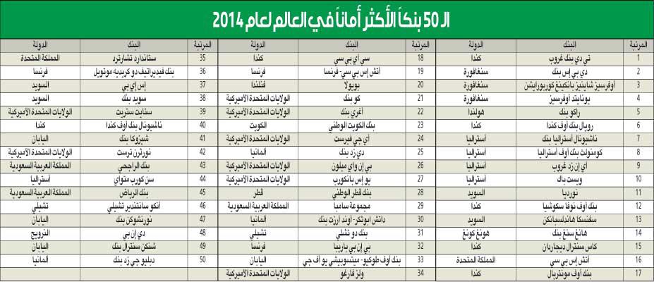 «الوطني» الأكثر أماناً بين جميع البنوك التجارية في الدول العربية