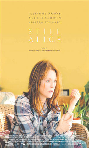 يتتبع فيلم Still Alice، الذي استوحاه المخرجان واش ويستمورلاند وريتشارد غلاتزر من رواية ليزا جينوفا (2007)، قصة الشخصية الرئيسة: بروفسورة ناجحة متخصصة في علم النفس في جامعة كولومبيا وأم لثلاثة أولاد بالغين. فنراها تصارع لتتمسك بحياتها السابقة بينما يزداد ذهنها تشوشاً. تحاول كتابة خطاب فيما تضيع الكلمات منها. تنسى ابنتها الممثلة (كريستن ستيوارت) في الكواليس خلال مشاركة هذه الأخيرة في مسرحية. كذلك تدوّن توجيهات لنفسها حين تضعف مقدراتها في المستقبل. وهكذا تنجح مور في دورها في Still Alice، الذي جعلها إحدى أبرز الممثلات المرشحات لجائزة أوسكار أفضل ممثلة رئيسة، في تصوير مدى قساوة هذا المرض من الداخل.