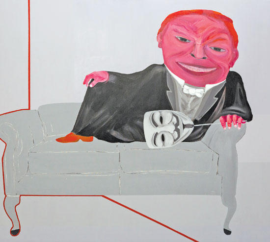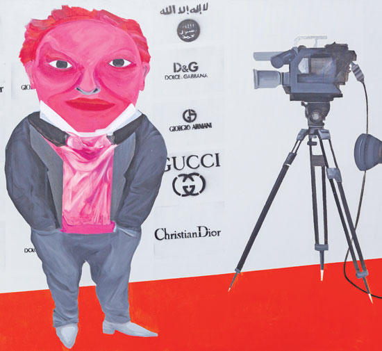 الفنان الذي يقدِّم بالريشة نقداً بارزاً ملوِّناً {الانحراف» في مجالات اجتماعية شتى، يصوِّر الوضع الفاسد للمجتمع ويحاول قراءته في خضم التعقيدات الحياتية، وقبل كل شيء ضمن تشكيل الهويات المبتكرة على أساس الحقائق المشيدة سلفاً، والنفاق الذي يدخل في تركيبة بناء غالبية تلك الشخصيات.ولد الفنان في طرطوس في سورية عام 1976، وهو يعيش في بيروت. في لوحاته، يلفتنا تحولاً في نمط ريشته من مساحة إلى أخرى، من زاوية إلى أخرى، ولوحة إلى أخرى. يستخدم ألواناً ساطعة قوية لتشكيل مزيج من التعبيرية الواقعية، مستحدثاً خيارات وصفية متقدة. للوهلة الأولى، تقودنا اللوحة نحو زخارف بسيطة تحيط بالشخصيات الوحشية المرسومة. في لوحة بعنوان «عربي مجهول» مثلاً، تظهر شخصية رجل يرتدي بذلة توكسيدو مستلقياً على أريكة عتيقة، يحمل بيده قناعاً مرسوماً، هو رمز مجموعة {هاكتيفيزم} العالمية. يصوِّر سلمان رجلاً واثقاً ومتأنقاً ومتمرساً في حياة ذوي الامتيازات، تُظهر ذاته البشعة ضربات ريشة فالتة من المعايير التشكيلية كافة. ولم ينس سلمان تنظيم الدولة الإسلامية {داعش}، إذ نرى شعاره في عمل {براندات}، وعلى السجادة الحمراء، على خلفية كُتبت عليها أيضاً مجموعة من العلامات التجارية العالمية. وتبدو أمام كاميرا التلفزيون شخصيةٌ متأنقة ومستعدة لالتقاط صورة لها.يرسم سلمان تقاطعات الاستهلاك الجماهيري ووسائل الإعلام في الساحة السياسية، وتحديداً تمكين الجماعات الإرهابية على أرض الواقع من خلال التسويق الفطن والبروباغندا الإعلامية. كذلك يركز في أعماله الأخيرة على المؤشرات المزعومة للمجتمع {المتحضر} كاشفاً التكريس المشوش للثقافة المتشكلة في الآونة الأخيرة.قيس سلمان الذي تخرج في كلية الفنون الجميلة في دمشق عام 2002، يستثمر القضايا الراهنة، لا سيما الشائكة منها: الإرهاب، الاستهلاك، جراحات التجميل، التعصب الديني، الإمبريالية، وتلصصية العصر الرقمي... وهو عالج هذه الموضوعات في معارض جماعية عدة شارك فيها، ومعارض فردية من بينها: بينالي الاسكندرية (2014)، غاليري مركز مالي في دبي (2010 - 2014)، غاليري أيام بيروت (2012 - 2014 - 2015)، غاليري أيام في دبي (2010 - 2011 - 2014)، متحف دمشق للفنون الحديثة في سورية (2009) بارك آفينيو آرموري في نيويورك (2008)، مهرجان قرطاج لفناني ساحل البحر الأبيض المتوسط في تونس (2005). وعُرض عمل له من سلسلة «أزياء» على مجلة {وول ستريت} في عدد مايو 2010، وكان أول فنان عربي يظهر على غلافها.يستمر المعرض حتى 20 مارس المقبل.