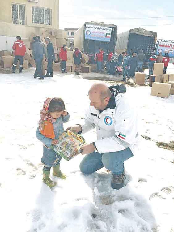 واصلت جمعية الهلال الأحمر الكويتي أمس حملتها الاستثنائية العاجلة لمساعدة النازحين السوريين في مدينة بعلبك اللبنانية.وقال موفد الجمعية إلى لبنان د. مساعد العنزي في تصريح له إنه تم توزيع مساعدات عاجلة لإغاثة المتضررين من موجة البرد على 500 أسرة سورية نازحة في مدينة بعلبك شملت مدافئ وبطانيات وملابس شتوية للنساء والأطفال، ومادة الديزل.وأشار إلى تضرر عدد كبير من النازحين بعد موجة البرد والثلوج والأمطار التي مرت على لبنان، لافتاً إلى أن هناك مساعدات اضافية ستقدمها الجمعية خلال الفترة المقبلة، من أجل التخفيف من معاناة الأسر السورية وتلبية احتياجاتها قدر الإمكان بناء على توجيهات القيادة السياسية، وعلى رأسها صاحب السمو أمير البلاد الشيخ صباح الأحمد.وواصلت جمعية الهلال الأحمر لليوم الخامس جهودها المكثفة لإيصال المساعدات الشتوية لألف أسرة لاجئة سورية بمدينة (الطرة) الأردنية الأكثر تضررا من العاصفة الثلجية التي اجتاحت المملكة مؤخرا.وقال رئيس الفريق الميداني لجمعية الهلال الاحمر الكويتي عبدالله الناصر في تصريح له، ان فريق الجمعية وزع مساعدات شتوية على ألف أسرة سورية شمال الأردن شملت التمور ودفايات وزيت التدفئة، واصفا هذه المواد بالضرورية للاجئين الذين يعيشون أجواء شتوية شديدة البرودة.وأشار إلى أن الحملة تأتي ضمن سلسلة حملات تتواصل منذ اندلاع الازمة السورية، مضيفا أن الفريق الميداني الكويتي استطاع الوقوف على الأوضاع الصعبة التي يعيشها اللاجئون السوريون وتقديم الدعم المعنوي والمادي لهم.وتوقع الناصر أن تصل الى الأردن خلال الايام القليلة القادمة سبع شاحنات محملة بـ30 ألف بطانية ومواد غذائية ودفايات لإغاثة اللاجئين السوريين.يذكر أن موجة الصقيع التي اجتاحت لبنان ساهمت في زيادة معاناة النازحين السوريين، خصوصاً كبار السن، فضلاً عن تسببها في وفاة عدد من الأطفال وأضرار مادية كبيرة.وفي مجال إنساني آخر، بحث رئيس مجلس ادارة جمعية الهلال الأحمر الكويتي د. هلال الساير مع سفير الكويت لدى جمهورية لاوس الديمقراطية الشعبية نبيل الدخيل، كيفية تقديم المساعدات الإغاثية لتلك الدولة التي تتعرض للسيول بصورة مستمرة.وقال السفير الدخيل في تصريح صحافي عقب لقائه مع الساير، إن «اللقاء تطرق إلى موضوعات عدة تتعلق بالطبيعة الجغرافية والمناخية للاوس، التي تعد من أكثر البلدان التي تجتاحها السيول والأمطار».وذكر أن الكويت هي الدولة العربية الوحيدة التي لها سفارة في جمهورية لاوس، التي يبلغ تعداد سكانها نحو 6.7 ملايين نسمة، ويبلغ الدخل الشهري للفرد فيها نحو 100 دولار أميركي. تبرعات كويتيةبدورها قدمت جمعيتا إحياء التراث الإسلامي والنجاة الخيرية تبرعات بنحو 800 ألف دولار لكل من لجنة زكاة القدس الفلسطينية وجمعيتي التكافل الخيرية والمحسنين الخيرية الأردنيتين.وسلم سفير الكويت لدى الاردن الدكتور حمد الدعيج رئيس لجنة زكاة القدس أشرف سلهب دعما مقدما من جمعية إحياء التراث بقيمة 518 ألف دولار، ودعما آخر من الجمعية نفسها بـ276 ألفا لرئيس جمعية التكافل الخيرية الأردنية (الرمثا) فيصل الذيابات.كما سلم رئيس جمعية المحسنين الخيرية بالعاصمة عمان علي ابورميس التعمري دعما بقيمة 7800 دولار مقدما من جمعية النجاة الخيرية.وقال السفير الدعيج في تصريح له إن الدعم المقدم للجمعيات الثلاث يأتي في اطار العطاء الكويتي وترجمة لتوجيهات سمو امير البلاد الشيخ صباح الاحمد لدعم الشعب الفلسطيني واغاثة اللاجئين السوريين.وأضاف الدعيج أن سفارة الكويت في الاردن تتواصل منذ سنوات مع مؤسسات فلسطينية لدعم أنشطتها في فلسطين انطلاقا من موقف الكويت الداعم للشعب الفلسطيني، وتعزيز صموده في مواجهة ممارسات الاحتلال حتى تحرير ارضه واقامة دولته المستقلة.وأشار الى ان الدعم المقدم للجمعيات الاردنية يأتي لإغاثة اللاجئين السوريين في الاردن ضمن نشاط انساني كويتي مكثف يأخذ طابع الاستمرارية من خلال وفود شعبية بدأت بالنشاط الإغاثي من