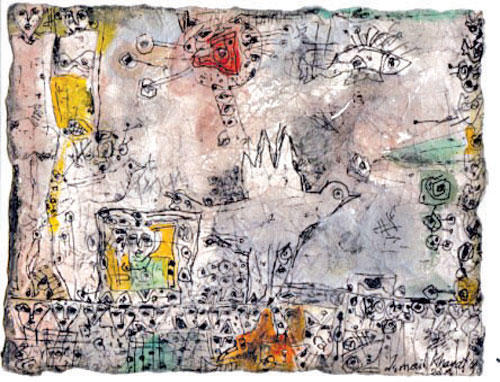لوحات اسماعيل خياط أناشيد تنطلق من بلده كردستان إلى بلدان العالم، منددة بالظلم والقهر أينما وجد، وصارخة في وجه كل من يغذي المؤامرات لتقتلع الحضور الإنساني من أرضه وجذوره وحضارته وبيئته.حكايات الأزمنة قضية اسماعيل خياط، إذاً هي الإنسان، لذا يتأرجح التأليف في لوحته بين الرمزية وبعض من التجريد، فهو لا يبحث عن الجمال بقدر ما يرمي إلى إبراز مفاعيل المعاناة على وجوه حفرت فيها المآسي والتجارب جراحاً نازفة على الدوام. لكنه رغم كل هذا التشابك بين الواقع واللوحة، يبدو فيها بصيص من نور داخلي يرفض الإغراق في التشاؤم وينظر إلى المستقبل بخطوط ولو رفيعة من الأمل...تزخر اللوحات بحكايات ترددها الأزمنة، تحلق في فضاء المشاعر والأحاسيس، وتشكل محطة تأمل في الماضي والحاضر لرسم مستقبل أكثر إشراقاً وأقل دموية، تطرح أسئلة في الوجود وتتوق إلى تجاوز المحدود إلى اللامحدود، استكشاف أعماق هذا الكون المسيّر بقوة تمحورت حولها الميتولوجيات ورسمت هالة من غموض على الواقع والمسار والمصير.قد تكون الرموز والخطوط والأشكال التي تؤلف لوحة اسماعيل خياط بطاقة سفر إلى عوالم أخرى ليس أقلها عالم الأحلام، حيث تتنقل ريشته بحرية وترسم الوجوه الملونة بألوان الحياة وتعيد قراءة الماضي والحاضر بجمالياتهما وليس ببشاعاتهما وظلمتهما.قد تكون الحياة سلسلة مستمرة من الأقنعة، هذا صحيح، لك ن اسماعيل خياط يدعو إلى نزعها، مواجهة الحقيقة كل الحقيقة بإصرار وشجاعة. لِم الأقنعة طالما أن الروح تستطيع تجاوز الحدود والتحليق في فضاء لامتناهٍ متحررة من المادة ومن التصنع والكذب والخداع؟ لِم الأقنعة طالما أن مصير الإنسان في النهاية معروف وهو الموت؟ لِمَ الأقنعة طالما أنه قادر على العمل وتحقيق إرادة التغيير؟قد تنم الأقنعة عن زيف وعن خوف وتردد من المواجهة، لذا يدعو اسماعيل خياط في لوحاته إلى رؤية الحياة كما هي، والحوار مع الذات ومع الآخر ضمن سلسلة تراكمية من الثقافات والحضارات التي لا تقوى عليها المؤامرات والمحن ولا تستطيع إزالتها من الوجود.في النهاية لعبة الخير والشر القائمة منذ الأزل وباقية إلى ما شاء الله، تتحكم الممارسات في رجحان كفة هذا أو ذاك، بالتالي قد يكون الإنسان سيد مصيره والمسؤول عن سجنه أو عن حريته... لذا ليس محكوماً برؤية الحياة من خلف القناع.