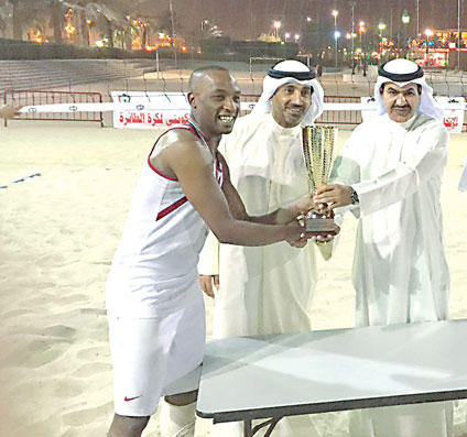 وعقب المباراة الأخيرة قام أمين سر الاتحاد عبدالله كايد وأمين الصندوق خلف الهاجري، وعضو مجلس الادارة رئيس لجنة الشاطئية عبدالكريم جاولي بتسليم كأس البطولة للاعبي الكويت.الكويت بطل كأس التفوق وبعد هذه البطولة تمكن نادي الكويت من الظفر بلقب كأس التفوق في اللعبة للمرة الأولى في تاريخه بعد أن جمع 24 نقطة، في حين جاء القادسية في المركز الثاني برصيد 21 نقطة، وكاظمة ثالثا برصيد 17 نقطة.النصف: موسم استثنائيمن جهته، أعرب عضو مجلس إدارة نادي الكويت مدير اللعبة محمد النصف عن سعادته بفوز فريقه بلقب أول نسخة من البطولة الشاطئية وحصد لقب كأس التفوق العام للعبة للمرة الأولى في تاريخ النادي، وقال: "الموسم الحالي كان استثنائيا بمعنى الكلمة، وهو ثمرة مجهود كبير بذله النادي منذ سنوات من أجل تحقيق الإنجازات والفوز بالبطولات، حيث فاز الكويت بلقب كأس الاتحاد بعد غياب قرابة الـ37 عاماً، ثم كأس "الشاطئية"، لافتاً إلى أن الكويت ناد عريق وقادر على تحقيق الإنجازات على الدوام.