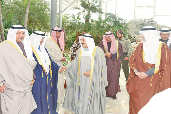 ورافق سموه في الجولة سمو الشيخ ناصر المحمد وسمو الشيخ جابر المبارك رئيس مجلس الوزراء والنائب الأول لرئيس مجلس الوزراء وزير الخارجية الشيخ صباح الخالد ونائب رئيس مجلس الوزراء وزير الداخلية الشيخ محمد الخالد.ويقام مشروع الحديقة النباتية «بوتانيكال غاردن» على مساحة 170000 مترمربع وهو عبارة عن مبنى زجاجي بمساحة 3200 مترمربع يحتوي على ثلاث حدائق «بوتانيكال».. حديقة البحر المتوسط - الحديقة الاستوائية - الحديقة الأوروبية والصحراوية، بالإضافة إلى جناح خاص مجهز بمختبر لتربية الفراشات بأنواعها. وتتميز هذه الحديقة بهندستها التي تحتوي على شلالات ونوافير وحدائق خارجية بتصميم كلاسيكي. ويقع هذا المشروع داخل قصر بيان كمرفق من مرافق القصر لاستقبال رؤساء الدول والزوار.إلى ذلك، استقبل سمو أمير البلاد الشيخ صباح الأحمد بقصر بيان صباح أمس، سمو ولي العهد الشيخ نواف الأحمد. كما استقبل سموه رئيس مجلس الأمة السابق جاسم الخرافي.واستقبل سموه سمو الشيخ ناصر المحمد. كما استقبل سموه سمو الشيخ جابر المبارك رئيس مجلس الوزراء.كما استقبل سموه النائب الأول لرئيس مجلس الوزراء وزير الخارجية الشيخ صباح الخالد.واستقبل سمو الأمير في قصر بيان أمس، وزير النفط وزير الدولة لشؤون مجلس الأمة الدكتور علي العمير الذي قدّم لسموه مدير عام الهيئة العامة للبيئة الشيخ عبدالله الحمود ونائب المدير العام لقطاع شؤون الرقابة البيئية د. محمد الأحمد ونائب المدير العام لقطاع الشؤون الفنية المهندس محمد العنزي ونائب المدير العام لقطاع الشؤون الإدارية والمالية رجاء البصيري وذلك بمناسبة تعيينهم في مناصبهم الجديدة.