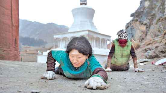 في البداية ومن سقف العالم، أظهرت مجموعة من الصور بوذيين في طقوس خلال الحج والصلاة الكبرى (مونلام) في دير لابرانغ بمقاطعة تشياهي، وتشمل بعض الطقوس الزحف على الأرض حتى الدخول إلى مكانهم المقدس. وأظهر التقرير كذلك صوراً للمسلمين في أثناء أدائهم طقوس الحج في مكة المكرمة، ومناظر عامة للمسيحيين في بعض أماكنهم المقدسة، وهي كنيسة المهد في بيت لحم، وكنيسة سانت بطرس "باسيلكا" في الفاتيكان، وكنيسة القيامة في القدس، وكنيسة البشارة في الناصرة، إذ يعتقدون أنه المكان الذي ظهر فيه جبريل، عليه السلام، لمريم العذراء، عليها السلام، وبشرها بالمسيح عليه السلام.وفي الأرض التي بارك الله حولها، أشار التقرير أيضاً إلى حائط المبكي، الذي يقدسه اليهود، والذي يحده الحرم القدسي من الجهة الغربية، أي يشكل قسماً من الحائط الغربي للحرم المحيط بالمسجد الأقصي، ويمتد بين باب المغاربة جنوباً والمدرسة التذكارية شمالا، وطوله 50 متراً وارتفاعه يقل عن 20 متراً. وعند اليهود أيضا كنيس مقدس يعتبر الأقدم في إفريقيا، يحجون إليه سنوياً، وهو كنيس جزيرة جربة التونسية.