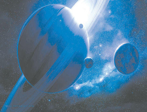 يبدو نظامنا الشمسي بالغ التنظيم: تتخذ مدارات الكواكب شكلاً دائرياً عموماً وتقع في المكان عينه، بخلاف المدارات الغريبة جداً خارج نظامنا الشمسي. انشغلت إلكي بيلات- لوهينغر من جامعة فيينا في النمسا بفكرة أن تأثير المشتري وزحل المشترك (ثقلَي النظام الشمسي) قد حدد مدارات كواكب أخرى. فاستخدمت نماذج إلكترونية كي تدرس تأثيرات أي تغييرات في مدار هذين الكوكبين العملاقين في الأرض.يبدو مدار الأرض شبه دائري إلى حد أن بعده عن الشمس يتراوح بين 147 و152 كيلومتراً فقط، أي نحو 2% كمعدل. ولكن لو قرّبنا مدار زحل بنحو 10% فقط لأحدث خللاً في مدار الأرض، مسبباً رنيناً (سحباً دورياً عموماً) يطيل مدار الأرض بنحو 10 ملايين كيلومتر. نتيجة لذلك، تبقى الأرض خلال جزء من السنة خارج المنطقة المأهولة، أي الحلقة حول الشمس حيث تكون الحرارة على الأرض ملائمة للماء السائل.
