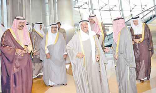 زار سمو أمير البلاد الشيخ صباح الأحمد دولة الامارات العربية المتحدة أمس، حيث التقى نائب رئيس الدولة رئيس مجلس الوزراء حاكم دبي الشيخ محمد بن راشد آل مكتوم، وولي عهد أبوظبي نائب القائد الاعلى للقوات المسلحة الفريق أول الشيخ محمد بن زايد آل نهيان.وتم خلال اللقاء تبادل الأحاديث الودية التي عكست عمق العلاقات الاخوية الراسخة التي تربط دولة الكويت بشقيقتها دولة الامارات العربية المتحدة، وسبل تعزيزها وتطويرها بما يخدم المصالح المشتركة للبلدين والشعبين الشقيقين، كما تم بحث القضايا ذات الاهتمام المشترك وآخر المستجدات على الساحتين الاقليمية والدولية.وغادر صاحب السمو والوفد الرسمي المرافق أبوظبي في ختام زيارة قصيرة متوجها الى دولة قطر وذلك في زيارة أخوية مماثلة.وفي الدوحة عقد صاحب السمو مباحثات رسمية مع أمير دولة قطر الشيخ تميم بن حمد بن خليفة آل ثاني، حيث تم استعراض افاق الدعم الخليجي المشترك لتحقيق المصالح المشتركة وآخر المستجدات على الساحتين الاقليمية والدولية.وحضر المباحثات الشيخ عبدالله بن ناصر بن خليفة آل ثاني والوفد المرافق لسمو الامير الذي غادر الدوحة في ختام الزيارة الى المنامة والتقى ملك البحرين حمد بن عيسى آل خليفة.وكان سمو الأمير غادر البلاد ظهر امس الى أبوظبي وكان في وداع سموه على أرض المطار سمو نائب الأمير وولي العهد الشيخ نواف الأحمد ووزير شؤون الديوان الأميري الشيخ ناصر صباح الأحمد، ونائب رئيس مجلس الوزراء وزير الدفاع ووزير الداخلية بالإنابة الشيخ خالد الجراح. وكان في استقبال ووداع سموه على أرض مطار أبوظبي الشيخ محمد بن راشد والشيخ محمد بن زايد آل نهيان، ومستشار الأمن الوطني الاماراتي الشيخ هزاع بن زايد آل نهيان، ونائب رئيس مجلس الوزراء وزير الداخلية الفريق الشيخ سيف بن زايد آل نهيان، ونائب رئيس مجلس الوزراء وزير شؤون الرئاسة الشيخ منصور بن زايد آل نهيان، ووزير الخارجية الشيخ عبدالله بن زايد آل نهيان، وسفير الكويت لدى دولة الامارات العربية المتحدة صلاح البعيجان.ورافق سموه وفد رسمي يضم كلا من النائب الأول لرئيس مجلس الوزراء وزير الخارجية الشيخ صباح الخالد، والأمين العام لمجلس التعاون لدول الخليج العربية الدكتور عبداللطيف الزياني، ومدير مكتب صاحب السمو أحمد الفهد، ورئيس المراسم والتشريفات الأميرية الشيخ خالد العبدالله.الأمير يبعث ببرقية تهنئة إلى السلطان قابوسبعث سمو أمير البلاد الشيخ صباح الأحمد ببرقية تهنئة إلى السلطان قابوس بن سعيد سلطان عمان الشقيقة، أعرب فيها سموه عن بالغ سروره وغاية سعادته وسعادة شعوب دول الخليج العربية والدول العربية الشقيقة بمشاهدة السلطان قابوس وسماع صوته عبر إطلالته الكريمة، وتوجيه كلمته القيمة للشعب العماني الشقيق بمناسبة الذكرى الرابعة والأربعين لمسيرة النهضة الظافرة لسلطنة عمان الشقيقة وطمأنتهم على صحته.وأشار سموه إلى أن هذه الإطلالة الكريمة وطمأنة الجميع على صحته أشاعت البهجة والفرحة لديهم، وكان لها أبلغ الأثر في نفوسهم، مبتهلا سموه إلى المولى جل وعلا أن ينعم على سلطان عمان بموفور الصحة وتمام العافية والعمر المديد والعودة بالسلامة بإذن الله تعالىإلى وطنه وشعبه، وان يحقق للسلطنة الشقيقة وشعبها الكريم المزيد من الرقي والازدهار في ظل قيادته الحكيمة.