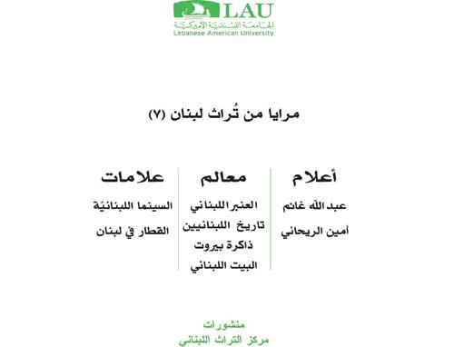 مهد لكتاب {مرايا من تراث لبنان{مدير {مركز التراث اللبناني} في الجامعة اللبنانية الأميركية الشاعر هنري زغيب بكلمة جاء فيها: {اثنَتَا عشْرةَ سنةً من عمر {مركز التراث اللبناني} ولا نزال في المطالع. سبعةُ أَجزاء من {مرايا التراث} ولا نزال في المقدمات.موسماً بعد موسم، نجترح الندَوات واللقاءات والأَنشطة التراثية، وكلما توغَّلْنا في كنوز تراثنا اللبناني اسَّاقَطَت من فضائه نجومٌ شهيةٌ تُغري بالتَّوَغُّل بعدُ صوب اكتشاف أَبعادٍ تَحسُرُ عن ماضٍ وأَيدٍ مباركةٍ وعقولٍ ناصعةٍ زرعَت لنحصُدَ ونتّعظ.في هذا الجزء السابع من الــ}مرايا} صفحاتٌ مُـمتعةٌ تتعاكس فيها المرايا فتــتلاقى الوجوه بالنتاج بالإِرث، ويكون كنزٌ جديدٌ للبنان الفريد بكنوزه.ما أَوسعَه هذا التراث، وما أَغناه في تَــنَــوُّع أُصوله وأُصَلائه. لكأَنه المدى كلما قطَفْنا فيه فاصلةً أَشرقَت منه فواصل.رسالتنا في {المركز} أَن نُواصلَ حَسْرَ الزمن عن وجه تراثنا البهيّ حتى يَشُعَّ وجهُهُ جليّاً نقيّاً لائقاً بوجْهِ لبنان}.رئيس الجامعةقدم للكتاب رئيس الجامعة الدكتور جوزف جبرا مؤكداً أنّ «أهمية هذا المركز في الجامعة تكبر خصوصاً في هذا الزمن الذي نمر به، وتمر به البلاد من صعوبات على غير صعيد، ما يتطلّب من جميع المخلصين التضافر في الجهد والتنفيذ لإبقاء الأمل في القلوب والعزم في العقول. وهذه ليست رسالة المركز وحسب، ولا رسالة الجامعة وحسب، بل رسالة لبنان الحضاري الذي يجب أن نحافظ عليها في كل ما نأتيه من أعمال، كي لا تخترقنا الأحداث التي تُلهب الجوار من حولنا، وقد تسعى إلى إضرام اللهيب في ربوع لبنان. لذا علينا التمسُّك بتراثنا وتاريخنا وهويتنا وشعبنا المقيم والمنتشر، كي لا نصبح من شعوب الشتات. وهنا أهمية «مركز التراث» في الجامعة اللبنانية الأميركية لمواصلة الدور والرسالة في خدمة الوطن والحضارة اللبنانية. لذا تدعم الجامعة «مركز التراث اللبناني» فيها وتؤكّد على دوره في مجتمع الجامعة وفي المجتمع اللبناني عموماً، ليخلق الجوّ السليم بمتابعة الإرث اللبناني والحفاظ عليه». الندواتفي هذا الجزء الجديد نصوص ثماني ندوات عقدها «المركز» بين تشرين الأول 2013 وحزيران 2014.الندوة الأولى كانت عن الشاعر عبدالله غانم شارك فيها الشاعر شوقي بزيع والمحامي الكاتب ألكسندر نجار والرئيس غالب غانم وجهاد الأندري قارئاً من قصائد الشاعر، ورافقها معرضٌ موسّع جمع منتخبات من متحف مركز عبدالله غانم الثقافي في بسكنتا حيث أغراضه ومخطوطاته ومؤلفاته ونسخ من صحيفتَي «صنين» و»الدهر».الندوة الثانية كانت عن العنبر اللبناني كنزاً فريداً بقدمه في العالم، قدّمها العالـم الدكتور داني عازار وتداخل فيها الدكتور جورج طعمة عن أهمية العنبر في بلادنا، والمخرج فيليب عرقتنجي عن علاقة العنبر اللبناني بالفيلم الأميركي «جوراسيك بارك».الندوة الثالثة كشفت كيف أن تاريخ لبنان لا يكتبه المؤرخون بل اللبنانيون في جمع تراث قُراهم وبلداتهم، أعدّ لها وقدّم مضمونها الدكتور أنطوان مسرّة وشارك فيها نقولا الفتى عارضاً تراث كفرشيما، ومايا كنعان سعد تراث حمانا، وكامل جابر تراث النبطية والجنوب، وأنطوان سلامة تراث زوق مكايل بلدة المتاحف الثلاثة.الندوة الرابعة استحضرت ذاكرة السينما اللبنانية من خلال ملصقات أفلامها كما جمعها الناشر عبودي أبو جودة، شارك فيها المخرج جورج نصر عارضاً صعوبات فيلمه «إلى أين؟»، وإميل شاهين عارضاً لمحة عن أبرز محطات السينما اللبنانية، ومحمود زيباوي عن أبرز الأفلام في مطالع السينما اللبنانية بين 1946 و1966.الندوة الخامسة طرحت موضوع القطار في لبنان وتاريخ السكك الحديدية ومحطاتها، عرضه المخرج الياس معلوف منذ صفارة أول قطار في لبنان سنة 1895 حتى سكوت الصفارة وهجران السكك الحديدية سنة 1976، وما زال لبنان حتى اليوم بدون قطار وبدون سكك. وعرض معلوف وإدي شويري مشروع متحف القطار في لبنان، وتداخلت سارة ياسين وياسمين معكرون بو عساف حول الموضوع ذاته.الندوة الس
