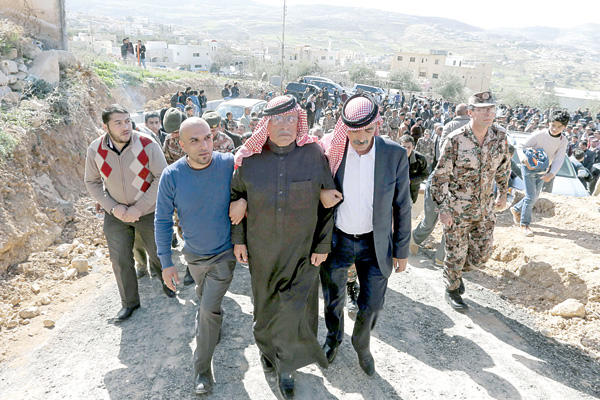 عاش الأردن أمس يوماً صعباً، حيث سادت حالة من الغضب والسخط والذهول غداة إعلان تنظيم «الدولة الإسلامية - داعش» قتله الطيار الأردني معاذ الكساسبة حرقاً حتى الموت. وقامت السلطات الأردنية فجر أمس، بتنفيذ حكم الإعدام شنقاً بحق الانتحارية العراقية ساجدة الريشاوي التي كان طالب «داعش» باطلاق سراحها، والعراقي زياد الكربولي المنتمي إلى «القاعدة».العاهل الأردني يعودوغداة تظاهرات غاضبة مطالبة بالثأر شهدتها معظم المناطق الأردنية، توجه آلاف الأردنيين أمس، إلى مطار الملكة علياء الدولي واستقبلوا العاهل الأردني الملك عبدالله الثاني الذي عاد إلى البلاد قاطعاً زيارة لواشنطن أجرى خلالها لقاء خاطفاً مع الرئيس الأميركي باراك أوباما.وفور وصوله البلاد التي تعيش حداداً رسمياً سيستمر حتى السبت، عقد العاهل الأردني اجتماعاً مع قيادة الجيش والمسؤولين الأمنيين لبحث كيفية الرد على جريمة قتل الكساسبة. وكان الملك عبدالله الثاني اعتبر في كلمة مصوّرة وجهها إلى الأردنيين مساء أمس الأول، أن الكساسبة «قضى دفاعاً عن عقيدته ووطنه وأمته» ودعا الأردنيين إلى «الوقوف صفاً واحداً».وعقب الاجتماع هدد العاهل الأردني الملك عبدالله الثاني أمس، تنظيم «داعش» خلال اجتماع مع كبار القادة العسكريين في الجيش «برد قاس»، مؤكداً أن دم الطيار الأردني «لن يضيع هدراً».ونقل بيان صادر عن الديوان الملكي الأردني عن الملك عبدالله قوله، إن «دم الشهيد البطل الطيار معاذ الكساسبة، رحمه الله، لن يذهب هدراً، وإن رد الأردن وجيشه العربي المصطفوي على ما تعرض له ابنه الغالي من عمل إجرامي وجبان سيكون قاسياً، لأن هذا التنظيم الإرهابي، لا يحاربنا فقط، بل يحارب الإسلام الحنيف وقيمه السمحة».وأضاف: «نخوض هذه الحرب لحماية عقيدتنا وقيمنا ومبادئنا الإنسانية، وحربنا لأجلها ستكون بلا هوادة، وسنكون بالمرصاد لزمرة المجرمين، ونضربهم في عقر دارهم».وعبّر الملك عبدالله عن «اعتزازه الكبير بالجهود المكثفة التي بذلتها الحكومة والقوات المسلحة الأردنية والأجهزة الأمنية لإنقاذ الشهيد البطل الكساسبة، والتي استمرت منذ اللحظة الأولى لسقوط طائرته، وحتى إعلان نبأ استشهاده».وأعرب عن «ثقته العالية بمؤسسات الدولة الأردنية وأجهزتها العسكرية والأمنية والإعلامية، ومستوى التنسيق الكامل بينها، وبقدرتها على حماية الوطن ومكتسباته، والذّود عنه في مختلف الظروف».كما عبّر عن «فخره واعتزازه بتلاحم أبناء وبنات الأسرة الأردنية الواحدة في هذا الظرف، والوقوف صفاً واحداً في وجه الأخطار والتهديدات الإرهابية، وإصرارهم على المضي قدماً بمسيرة بلدهم الأبي».وأشاد الملك بـ «موقف المجتمع الدولي الداعم والمساند للأردن في التعامل مع هذا الخطر، ودوره في الحرب الدائرة ضد الإرهاب، التي هي حرب العالم العربي والإسلامي أجمع».ونقلت وكالة «رويترز» عن متحدث حكومي قوله، إن الأردن سيصعّد دوره في الائتلاف الدولي ضد «داعش». ويمثّل الأردن دولة مهمة في هذا الائتلاف كونه من الدول القريبة من ساحة المعركة.مسيرات وتظاهراتوتظاهر مئات الأردنيين مساء أمس الأول في دوار الداخلية وسط عمان للتنديد بعملية الإعدام الوحشية كما تظاهر مئات الأشخاص أمام ديوان أبناء محافظة الكرك «116 كلم جنوب عمان» التي يتحدر منها الطيار. وتواصلت التظاهرات والمسيرات أمس. وكتبت صحيفة «الرأي» الحكومية مقالاً افتتاحياً أمس، تحت عنوان «الحساب مفتوح معكم...أيها القتلة» جاء فيه: «ليس بعد اليوم هدنة أو تسامح أو تساهل...اخترتم أيها القتلة أن تكونوا في الدرك الأسفل إنسانياً وأخلاقياً ودينياً». وأضافت الصحيفة «عليكم الآن أن تدفعوا الثمن، وسيكون ثمناً باهظاً ولن تنفعكم كل تبريراتكم وهلوساتكم وأوهامكم».الرياض ودمشقومنذ الإعلان عن مقتل الكساسبة، توالت ردود الفعل المستنكرة والمُدينة. وأكد العاهل السعودي الملك سلمان بن عبدالعزيز، أن جريمة قتل الكساسبة «مخالفة لسماحة ديننا الإسلامي الحنيف وكافة الأعراف ال