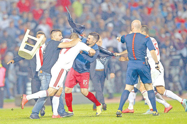 أحداث شغب واستفزاز سياسي توقف مباراة صربيا وألبانيا