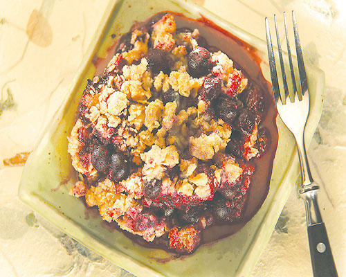المقادير:• الفتات من الأعلى- كوب من رقاقات الشوفان التقليدية.- نصف كوب من الطحين.- نصف كوب من السكر الناعم.- نصف كوب من السكر الأسمر الفاتح اللون.- نصف كوب (لوح) من الزبدة.الطريقة:1. في وعاء متوسط الحجم، اخلطي الشوفان مع الطحين والسكر الناعم والسكر الأسمر.2. اخلطي بأصابعك الزبدة مع المكونات الجافة إلى أن تحصلي على خليط متجانس يشبه البازيلاء الصغيرة. ضعيه جانباً.• كوبلر التوت البري - كيلوغرامان من التوت البري.- ربع كوب من السكر.- ملعقتان كبيرتان من الطحين.- 5 ملاعق كبيرة من الكريما الكثيفة.- ملعقتان كبيرتان من عصير البرتقال الطازج.- ملعقة صغيرة من برش البرتقال الدقيق.- الفتات للزينة.الطريقة:1. حمي الفرن على حرارة 170 درجة مئوية.2. في وعاء كبير، ضغي التوت البري مع السكر، الطحين، الكريما الكثيفة، عصير البرتقال، وبشره.3. ضعي الحشوة في صينية خبز (50 سنتمتراً مربعاً) ورشي فوقها الفتات.4. اتركيها في الفرن إلى أن يصبح لون الفتات ذهبياً داكناً وتظهر الفقاعات في الحشوة، أي نحو 30 إلى 35 دقيقة.5. أخرجيها بعد ذلك من الفرن واتركيها على مشبك لتبرد قليلاً.في الحصة: 280 سعرة حرارية، غرامان من البروتين، 46 غراماً من النشويات، 3 غرامات من الألياف، 11 غراماً من الدهون، 6 غرامات من الدهون المشبعة، 29 مليغراماً من الكولسترول، 32 غراماً من السكر، و7 مليغرامات من الصوديوم.