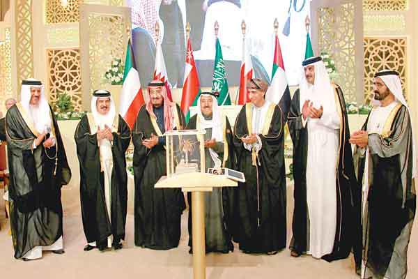 واعتبر سموه، خلال كلمته في افتتاح القمة الـ35 لدول مجلس التعاون، والتي شهدت تكريم قادة المجلس لسموه بمناسبة تتويجه من قبل الأمم المتحدة بلقب قائد العمل الإنساني، أن «الاختلاف في وجهات النظر وتباينها أمر طبيعي ومطلوب ولا يدعو إلى الجزع، شريطة ألا يصل إلى مرحلة الخلاف والتشاحن والقطيعة»، محذراً من القطيعة لأن من شأنها أن تؤدي «إلى إضعافنا وتراجع قدراتنا في الحفاظ على ما تحقق من إنجازات». وأضاف أن «القلق والتخوف على مسيرة مجلسنا المباركة دفعانا لنعمل بكل الجد والاجتهاد للحفاظ على هذه المسيرة وصيانة مكاسبها في ظلّ ظروف إقليمية ودولية بالغة الدقة، جعلت من قلقنا مشروعاً وتخوفنا مبرراً، وانعكست على مسيرة عملنا المشترك وأدخلته في حِساباتٍ كادت أَن تعصف به وتنال من كياننا الخليجي الذي بات يمثل الأمل والرجاء لأبناء دولِ المجلس».وبينما أكد سموه موقف الكويت الثابت إزاء «نبذ الإرهاب والتطرف بكل أشكاله وصوره»، مشدداً على التزامها بجميع القرارات الدولية الصادرة لمعالجة هذه الظاهرة الخطيرة لتخليص العالم من شرورها، دعا إيران إلى الالتزام التام بالتعاون مع الوكالة الدولية للطاقة الذرية لتطبيق أعلى معايير الأمن والسلامة في منشآتها النووية لتبديد مخاوف دول الجوار، كذلك دعاها الى حل قضية الجزر الاماراتية الثلاث.بدوره، أكد أمير قطر الشيخ تميم بن حمد، خلال الافتتاح، أن «الاتحاد الخليجي سيظل هدفاً سامياً للانطلاق منه نحو اتحاد عربي»، معتبراً أنه «آن الأوان لمجلس التعاون أن يحدد موقعه في الإقليم، فالدول الكبرى تتعامل وفق لغة المصالح فقط، ومع من يثبت قوته على الأرض».ورأى الشيخ تميم أن هدف الاتحاد الخليجي يتحقق عبر «خطوات تدريجية» تستند إلى شراكة فعلية في النظم الاقتصادية والاجتماعية، مبيناً أن الأمن الخليجي يتطلب الحفاظ على علاقات التعاون وحسن الجوار.