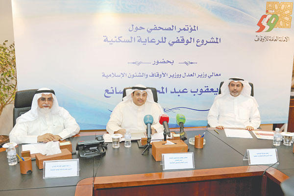 قال وزير العدل وزير الأوقاف والشؤون الإسلامية يعقوب الصانع انه «خلال رؤيتنا لتجربة الأمانة العامة للأوقاف منذ صدور الأمر السامي بإنشائها عام 1993 وتكليفها بالاهتمام بعموم الأوقاف وإدارته وصرف ريعه في المصارف المخصص له، شاهدنا التوسع الملحوظ للأمانة في مجال تطوير الأوقاف واستثمارها، ورأينا مساهمتها بشكل فعال في دعم مسيرة التنمية في دولة الكويت وخارجها، حتى أفرزت نجاحات متعددة واستقطبت قلوب الناس وعقولهم وحثتهم على المشاركة الإيجابية في إدارة ورعاية العمل الوقفي والخيري بشكل لم تشهده ساحات العمل المجتمعي من قبل».وأضاف الصانع، خلال حديثه في المؤتمر الصحافي الذي عقده صباح أمس بمناسبة تدشين المشروع الوقفي للرعاية السكنية: «استكمالاً لدور الأمانة في رعاية الفئات المستضعفة من المجتمع ونتيجةً لتفاقم المشكلة الاسكانية في المجتمع المدني، فقد بادرت إلى طرح مبادرة لسد حاجات بعض الأسر الكويتية غير القادرة على تحمل بعض نفقات السكن من خلال إنشاء المشروع الوقفي للرعاية السكنية وهو مشروع وقفي اجتماعي لكفالة العيش الكريم لمحدودي الدخل من الكويتيين ليندرج ضمن منظومة المشاريع الوقفية التي تقيمها الأمانة بالتعاون مع الجهات المعنية في مجال تنفيذ تلك المشاريع».وأوضح الصانح ان «فكرة المشروع في المساعدة على توفير السكن المناسب للأسرة الكويتية من ذوي الدخل المحدود غير القادرين على سداد الإيجارات بهدف رفع المستوى المعيشي لها، مع إعطاء الأولوية للأسر الأكثر احتياجا بما يدعم المكون الأساسي للمجتمع الكويتي وهو الأسرة ويرتقي بها اجتماعيا».واكد ان المشروع يسعى إلى تحقيق أهداف نبيلة من أهمها، مساعدة الأسر الكويتية من ذوي الدخل المحدود التي لا تمتلك منزلاً وتوفير البيئة المناسبة للعيش الكريم، وتيسير حياة أفضل لذوي الدخل المحدود وتحقيق الاستقرار الأسري والتكافل الاجتماعي بين أبناء المجتمع الكويتي، وإعانة غير القادرين من الشباب على تحمل تبعات الزواج المادية وتكاليفه، إضافة إلى تعزيز التعاون والشراكة بين الأمانة العامة للأوقاف ومؤسسات الدولة والجمعيات الخيرية لمساعدة الأسر من ذوي الدخل المحدود في توفير السكن المناسب لهم».دعم التنمية ومن جهته، قال الأمين العام للأمانة العامة للأوقاف د. عبدالمحسن الخرافي ان «هناك أهدافا عديدة تحققها تلك الصناديق الوقفية، من بينها المشاركة فى الجهود التي تخدم إحياء سنة الوقف عن طريق طرح مشاريع تنموية في صيغ إسلامية ضمن أطر شرعية للوفاء باحتياجات المجتمع المختلفة، وطلب الإيقاف عليها إضافة إلى حسن إنفاق ريع الأموال الموقوفة لتلبية الاحتياجات الاجتماعية والتنموية التي يفرزها الواقع من خلال برامج عمل تراعي تحقيق أعلى عائد تنموي وتحقق الترابط فيما بين المشروعات الوقفية، وبينها وبين المشروعات الأخرى التي تقوم بها الأجهزة الحكومية وجمعيات النفع العام».ولفت د. الخرافي الى «التجربة الوقفية التي شهدت تأسيس مشاريع وقفية غطت العديد من المجالات مثل رعاية طلبة العلم ورعاية ذوي الاحتياجات الخاصة ونشر مفهوم التطوع وتدريب المتطوعين ورعاية الأسرة»، مشيرا الى ان «الأمانة العامة للأوقاف سعت إلى التوسع في الخدمات الاجتماعية التي تقدمها للمجتمع، وخلق أفكار جديدة للوقف وتشجيع الواقفين على المشاركة فيها».وأكد الدكتور الخرافي ان «المشروع يستهدف شريحة الأسر الكويتية من ذوي الدخل المحدود من غير القادرين على تحمل بعض نفقات السكن من خلال المساعدة في دفع جزء من قيمة الإيجار الشهري للسكن، ويقدم المشروع للمستفيدين خدمات من شأنها رفع مستوى معيشتهم»، لافتا الى انه «سيتم تحديد المستفيدين من المشروع وترتيب الأولوية فيما بينهم وفق شروط ومعايير تراعي الحالة الاجتماعية والاقتصادية لمتقدم الطلب، يوضح من خلالها عدد أفراد الأسرة والدخل الشهري للمتقدم ومدى وجود مصادر مالية أخرى للسكن كبدل السكن أو امتلاكه لمنزل أو عقار، كما سيحدد المشروع عدداً من الضوا