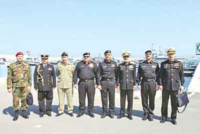 نيابة عن وكيل وزارة الداخلية المساعد لشؤون أمن الحدود اللواء الشيخ محمد اليوسف، استقبل المدير العام للادارة العامة لخفر السواحل بالوكالة العميد بحري مبارك العميري في قاعدة صباح الاحمد لخفر السواحل آمر القوة البحرية الكويتي العميد ركن بحري خالد الكندري، يرافقه آمر القوة البحرية لجمهورية باكستان الادميرال زكاء الله والوفد المرافق له.
