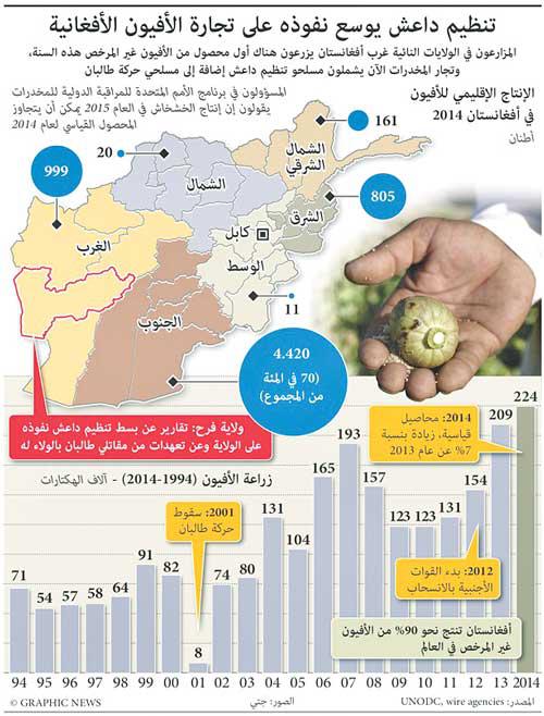 تنظيم داعش يوسع نفوذه على تجارة الأفيون الأفغانية نشر في 20-02-2015 | 00:01 آخر تحديث 20-02-2015 | 00:01