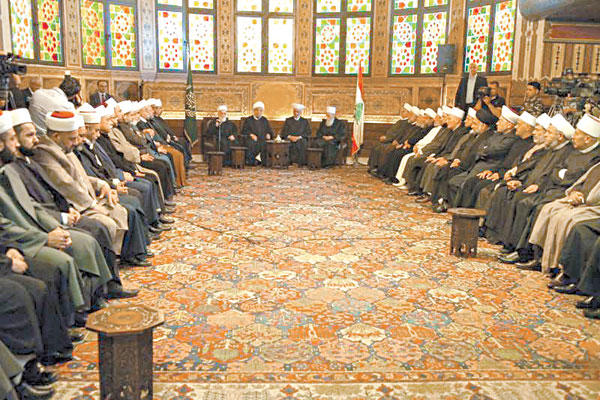 وشددت المصادر على أن «الجيش لديه الضوء الأخضر ليفعل ما يراه مناسبا في أي بقعة من الأراضي اللبنانية، وعندما يرى أن الظروف مؤهلة ليقوم بأي فعل فسيكون له الغطاء الكامل من كل الأفرقاء المؤمنة بعمله ودوره وقدراته»، مشيرة إلى أن «جلسة الخميس ستشهد التمديد لمدير عام قوى الأمن الداخلي إبراهيم بصبوص لمدة سنة».محاكمة سماحةوفي تطور جديد، قبلت المحكمة العسكرية طلب القاضي صقر بالتمييز في قضية الوزير السابق ميشال سماحة لناحية المادة 549 وترد طلب التمييز المقدم من وكيل سماحة. وحددت محكمة التمييز العسكرية 16 يوليو المقبل موعدا لإعادة محاكمة سماحة. وعلق رئيس الجمهورية السابق ميشال سليمان عبر «تويتر» قائلا: «القضاء ميزان العدل، وسماحة مجدداً الى المحاكمة في 16 تموز».وكان حكم بالسجن لـ4 سنوات على سماحة، المتهم بنقل متفجرات من سورية وبمساعدة من اللواء في الجيش السوري الموالي لنظام الرئيس بشار الأسد الى لبنان لتنفيذ تفجيرات تستهدف شخصيات سنية، أثار انتقادات واسعة. القمة الإسلامية في سياق منفصل، عقدت القمة الإسلامية اجتماعاً طارئاً في دار الفتوى في بيروت، أمس، حضره مفتي الجمهورية الشيخ عبداللطيف دريان، ونائب رئيس المجلس الإسلامي الشيعي الأعلى الشيخ عبدالأمير قبلان، وشيخ عقل طائفة الموحدين الدروز الشيخ نعيم حسن، ورئيس الطائفة العلوية في لبنان الشيخ أسد عاصي. وقد تم التداول في الأوضاع العامة لبنانياً وعربياً، وتوقفت القمة باهتمام أمام انعكاسات هذه الأوضاع على العلاقات الإسلامية - الإسلامية وعلى العلاقات الإسلامية - المسيحية.وأبدت القمة في بيان أيده وتبناه جميع العلماء «التزامها بالدولة الوطنية التي تساوي بين جميع مواطنيها في الحقوق والواجبات، تهيب بجميع أبنائها خصوصاً وبجميع اللبنانيين، احترام مؤسسات الدولة والالتزام بدستورها وقوانينها وأنظمتها والدفاع عن السلم الأهلي على قاعدة الاعتراف بتعددية المجتمع الوطني الواحد. إن القمة الاسلامية، إذ تحذر من الانجرار وراء دعاة الفتنة، وإذ تؤكد على الأخوة الدينية بين المسلمين والمسلمين، وعلى الوحدة الوطنية بين المسيحيين والمسلمين، تجدد ثقتها بقدرة لبنان على معالجة مشكلاته الداخلية بالحكمة والترفع عن الغرائز الطائفية والمذهبية، كما تجدد أملها في أن يتمكن لبنان، انطلاقا من انتخاب رئيس جديد للجمهورية هو الرئيس المسيحي الوحيد في العالم العربي، من أن يرتفع الى المستوى الذي يجعل منه قدوة صالحة لمعالجة الأزمات التي تعصف بالعديد من الدول العربية الشقيقة».القلمونفي موازاة ذلك، هاجمت مجموعات من المسلحين السوريين، فجر أمس، موقعاً لـ»حزب الله» يقع في محلة جرود نحلة وعرسال. وأدت المواجهة وتبادل النيران بين الطرفين الى سقوط شابين من الحزب وعدد من المهاجمين.وكانت «جبهة النصرة أعلنت عبر حسابها على «تويتر» عن هجوم على نقطتين تابعتين لـ»حزب الله» بين جرود عرسال والمعرة وقتل كل من فيهما واغتنام الأسلحة والذخائر منهما، وقد عرضت صوراً للذخائر من داخل المركز».«حفيد البغدادي» يعترف بتصوير ذبح السيد ومدلجاستجوب قاضي التحقيق العسكري عماد الزين أمس الموقوف عبد الرحمن بازر ياشي، الملقب بـ«حفيد البغدادي»، حيث اعترف خلال الاستجواب بتصويره عملية ذبح العسكريين علي السيد وعباس مدلج، كما اعترف بقتل احد العسكريين في طرابلس، ورمي قنابل على كنائس في المدينة.