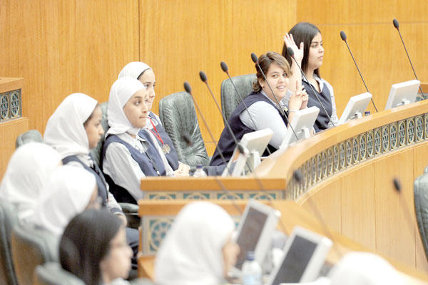 وشددوا على رفضهم مقترح تنظيم عمل اتحادات الطلبة، موضحين أن الطلبة لا يجب أن يستبعدوا عن العمل السياسي.ووافقوا على عدد من المقترحات بشأن البند الثالث فيما يخص غياب الطلبة والبند الرابع الذي يتعلق بإنشاء الجامعات وتوظيف إمكانيات الدولة في بنائها.ومن جهته، أكد رئيس مجلس الأمة مرزوق الغانم أن تقديم اقتراح تنظيم عمل اتحادات الطلبة لا يعني أنه خرج الى النور، ولكن هناك دورة تشريعية يمر بها.وبدوره، قال وزير التربية وزير التعليم العالي د. بدر العيسى إن الطلبة ليسوا حقلاً للتجارب، لافتاً إلى أن تطوير الوزارة للمناهج لن يقتصر على مادتي التربية الإسلامية واللغة العربية بل سيشمل جميع المناهج.افتتح رئيس مجلس الأمة مرزوق الغانم الجلسة الثانية لبرلمان الطالب في التاسعة والنصف من صباح امس، حيث بدأت الجلسة بتلاوة آيات من الذكر الحكيم، تلاها الطالب صقر الغانم، وبدأ جدول الأعمال بعرض فيلم وثائقي عن الجلسة الأولى، التي عقدت في 28 ابريل 2014، متضمنة مقتطفات من كلمات البرلمانيين الطلبة في الجلسة السابقة.وألقى الرئيس الغانم كلمة أكد فيها ان «لكل جيل شخصيته التي تميزه ولغته وتطلعاته وطريقته في التفكير والتحدث».من جانبه، قال وزير التربية وزير التعليم العالي د. بدر العيسى ان «هذه الفكرة جيدة ومتميزة وتساهم في توسعة مدارك الطلبة وتجعلهم يستبصرون حقوقهم، ما يساهم في ظهور قيادات مستقلة وتعزيز النهج الديمقراطي».وتلا الطالب الأمين العام لجلسة برلمان الطالب البند التالي، وهو طلب مناقشة مقدم من بعض الاعضاء (الطلاب) بشأن تنظيم عملية التعليم وتطوير المناهج وطرق التدريس ومناقشة المشاكل، مبيناً أن وزارة التربية تقوم بتطوير التعليم وتنظيم العملية التعليمية، الا ان العملية التربوية شهدت العديد من التطورات بما يجعلها تتوافق مع هذا التطوير الحديث.وقال إنه «على ضوء ظهور نماذج جديدة وما يتطلبه ذلك من اجراءات، ولأهمية اجراءات التعليم، خاصة المرحلة الثانوية التي تعتبر بوابة العبور إلى المرحلة الجامعية نتقدم بطلب عرض الموضوع لسياسة الحكومة لتبادل الرأي بصدده».الكم والكيفبدورها، قالت دانا الشمالي: «اشكر للمجلس اتاحة هذه الفرصة للتعبير عن رأينا»، مبينة أنه «للاسف اصبح الاعتماد الكلي على الكم وليس الكيف وذلك فيما يتعلق بالمناهج، وذلك يعود بالضرر علينا والسبب هو طول المنهج، فهل تريدون اخراج جيل فاهم ام متلقٍّ؟».وأضافت الشمالي: «نشكر جهود الدولة على وضع مناهج تواكب الدول المتطورة والمتقدمة، ولكن هذه المناهج تتطلب معلمين مدربين وذوي كفاءة».قوى طلابيةبدوره، قال جريان العتيبي: «لا أحد يعتقد اننا مجتمعون فقط للحديث، نحن اجتمعنا كقوى طلابية، وهي اهم فئة، وزارة التربية وزارة النشء، وتمنيت ان تعقد جلسات عديدة لعرض مشاكلنا، لكن بما انها جلسة واحدة واننا قطعنا عهدا ووعدا علينا لمخاطبة الوزير بشأن موضوع يخص كل طالب».من جانبه، ذكر عبدالعزيز حمادة: «ان الاتحادات الطلابية لم يعد لها اي دور، وننتقد التعدي على الحرم الجامعي، والقانون الذي يناقش حاليا بشأن الصوت الواحد في الاتحادات الطلابية سيخلق عدم تعاون في القوائم الطلابية، ونرفض هذا القانون جملة وتفصيلا، ولن نقبل ان نكون شكليا في هذا البرلمان».واكدت مناير الحسينان أن «موضوع المناهج اخذ أعلى نسبة تصويت لانه هو اللبنة الاولى لعملية التعليم، للاسف المناهج اصبحت تعتمد على الحفظ وليس الفهم، والدليل انصدام الطالب بدرجته لان المنهج متروس بالاخطاء».وقال عمر الوشيتان: «بالنسبة للمناهج نطالب بعدم تعديل منهج التربية الاسلامية إلا بعد مرور 5 سنوات، وهناك دروس في النحو وفي اللغة العربية يجب ان تنقى، والقصائد تعتمد على الكم لا الكيف، واهمال القراءة والكتابة في المرحلة الثانوية».خطوة ايجابيةوذكر مبارك العجمي: «اشكر المجلس لنلعب دور المراقب، واليوم ومن باب التطور قدمت الوزارة خطوة ايجابية لكن التنفيذ كان خاطئا في ما يتعلق بالمناهج، ونحن لسنا فئران ت