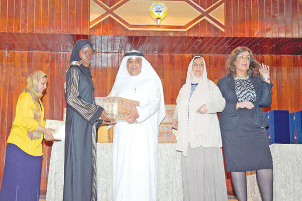 نظمت إدارة الخدمة الاجتماعية والنفسية بوزارة التربية حفل تكريم للطلبة المتفوقين بالثانوية العامة من طلبة المنح الدراسية.وأكد الوكيل المساعد لقطاع التنمية التربوية والأنشطة الطلابية فيصل مقصيد حرص وزارة التربية على تشجيع الطلبة المتميزين وتكريمهم، لاسيما طلبة المنح الدراسية التي تقدمها "التربية" إلى الطلبة من الدول الافريقية والآسيوية، لافتا الى انه تم تكريم 39 طالبا وطالبة منهم ممن حصلوا على 80 في المئة فأكثر في شهادة الثانوية العامة.