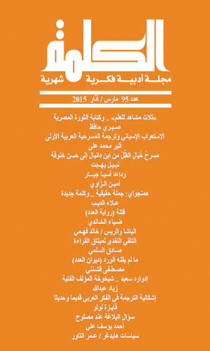 «ما لم يقله الورد»تقدم {الكلمة} في عددها الجديد ديواناً شعرياً من المغرب للشاعر مصطفى قشنني بعنوان دال هو {ما لم يقله الورد}، ونقرأ قصائد للشعراء أليس ووكر، ماجدة غضبان، سامح درويش، كريم بلال، حسن العاصي، ياسين عبدالكريم الرزوق، وغمكين مراد. وينشر باب {السرد} رواية من العراق موسومة بـ{قتلة} للكاتب العراقي ضياء الخالدي، الى جانب نصوص قصصية للمبدعين أحمد فراج، حسن بلاسم، أشرف الخريبكي، أمينة شرادي، حكيم نديم الداوودي، وعزيز ستراوي. أما في باب {النقد} فيتناول الباحث زياد عبدالله كتاب إدوارد سعيد {عن الأسلوب المتأخر} ويراه يعكس {شيخوخة المؤلف الفتية}، وتكتب رغداء زيدان {ما وراء التعذيب} في محاولة للإجابة عن سؤال هل يفقد التعذيب من يقوم به إنسانيته؟ أم أنه يفقد المجتمع الذي يتم فيه إنسانيته أيضا؟، وعن «جماليات العتبات» يقرأ نورالدين كرماط قراءة نقدية لسردية الروائي عبدالله لحسايني. ويقدم الكاتب يعقوب الشاروني تجربتين متميزتين في الحكي الشعبي للأطفال ومع الأطفال في المغرب وتونس، فيما يتناول خالد أقلعي الفيلم التسجيلي جدار الصمت، ويدعو حسن العاصي الى إيقاف الاعتداء على الثقافة رداً على بعض الممارسات المتطفلة على الفضاء الثقافي العربي في المهجر. ويرى الباحث عبدالكريم سليم علي أن رؤية جورج كيلي تتميز بالعقلانية في «الإنسان في نظرية التكوينات الشخصية لجورج كيلي».علاماتفي باب علامات، نرصد «سوق عكاظ في حديقة خوام» حيث يعود الباب إلى مجموعة خطب نشرت في جريدة «القبس» الدمشقية في شهر مايو سنة 1929، وألقيت في حرم الجامعة السورية بمناسبة زيارة فرقة رمسيس لدمشق برفقة بطليها الممثلين يوسف وهبي وجورج أبيض. أما في باب «مواجهات/ شهادات» فتنشر «الكلمة» ملفاً في وداع آسيا جبار يضمّ جوقة من الكتاب والمثقفين الجزائريين وهم يقدمون شهاداتهم على هذه الكاتبة الكبيرة.في باب «كتب» نقرأ لعلاء الديب «همنجواي: جملة حقيقية... وكلمة جديدة»، ولشوقي عبدالحميد يحيى «نبيل عبدالحميد يخرج الركام للسطح» في استعادة لغرق العبارة المصرية، وتكتب أمينة شرادي عن رواية محمد برادة الأخيرة المتوجة بجائزة المغرب للكتاب، ويكتب الناقد العراقي حميد الحريزي «كش وطن للروائي شهيد» حيث يركن الروائي بأسلوب تتبادل فيه السخرية الفاقعة والتراجيديا، وعن «لذة الكتابة» يكتب الناقد المغربي عزالدين بوركة عن كتاب ينقسم الى وحدات تهم القصة والقاص والكتابة.بالإضافة إلى ذلك تقدم المجلة رسائل وتقارير و{أنشطة ثقافية»، تغطي راهن الوضع الثقافي في الوطن العربي.