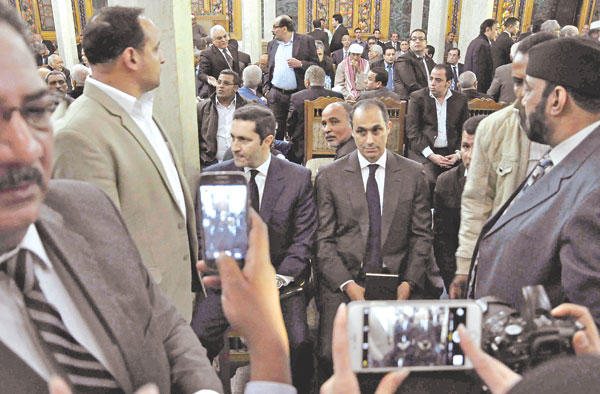 في مفاجأة غير متوقعة ظهر علاء وجمال نجلا الرئيس المصري الأسبق حسني مبارك، أمس الأول، في سرادق عزاء والدة الكاتب الصحافي مصطفى بكري، المحسوب على معارضي النظام إبان حكم مبارك، حيث فوجئ المُعزون بدخول نجلي مبارك إلى العزاء الذي أقيم في مسجد عمر مكرم بميدان التحرير المعروف بأنه «أيقونة الثورة المصرية» التي أطاحت حكم والدهما في 11 فبراير 2011.