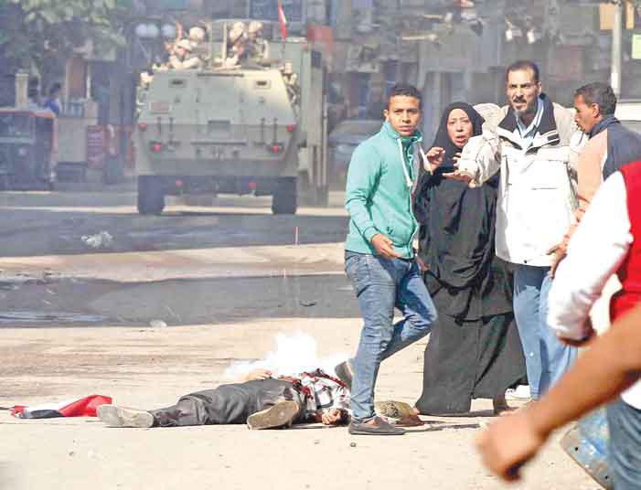 غابت «جحافل الإسلاميين» التي وعدت بها الجبهة السلفية المتشددة بأنها ستنزل الى الشوارع في «انتفاضة الشباب المسلم» التي دعمتها جماعة «الإخوان المسلمين» بالدعوة إلى تظاهرات «إيد واحدة»، فجاءت الحشود الهزيلة في انتفاضة أريد لها أن تدافع عن «هوية مصر» عبر رفع المصاحف والتهديد باستخدام السلاح من قبل إسلاميين متشددين، لتكرّس هزيمة مشروع الإسلام السياسي في مصر، وانهيار شعبيته عقب عام واحد من الإطاحة بنظام الرئيس «الإخواني» محمد مرسي.وشهد حي «المطرية» شرق القاهرة، أعنف المواجهات بين أنصار «الإخوان»، والأهالي وقوات الأمن، حيث قتل 4 أشخاص في المواجهات، بينما وقعت اشتباكات محدودة في عدة أحياء بأطراف القاهرة والجيزة، نجحت قوات الأمن في تفريقها.مقتل عسكريينوبينما قالت مواقع إخبارية مصرية إن أعلام تنظيم «الدولة الإسلامية» المعروف إعلامياً بـ«داعش»، رفعت في تظاهرات الإخوان، اعتلى عدد من أنصار الإسلاميين أسطح المنازل في حي «الشاطبي»، بمدينة الإسكندرية الساحلية، وأطلقوا النار، ما أسفر عن إصابة ضابط بقوات البحرية المصرية، وتفريق تظاهرة شعبية مؤيدة للرئيس السيسي.استهداف ضباط الجيش والشرطة ومجنديها، كان الملمح الأبرز في أحداث، أمس، ففي حين غابت المسيرات الحاشدة، حضر بقوة استهداف قوات الجيش التي شاركت في عمليات التأمين، حيث قتل ضابط تابع للقوات المسلحة المصرية برتبة عميد، وأصيب مجندان، نتيجة إطلاق مجهولين مسلحين أعيرة نارية على سيارة الجيش، التي كانت في دورية أمنية على طريق جسر السويس بالقاهرة صباح أمس.كما قتل مجند وأصيب ضابط برتبة مقدم إثر إطلاق مسلحين مجهولين النار عليهم بمنطقة «أبوزعبل» التابعة لمحافظة القليوبية. عبوات وأصيب ستة أشخاص بجروح وشظايا، إثر انفجار عبوة ناسفة، زرعها مجهولون بمنطقة «أبوكبير» في محافظة الشرقية، بينما انفجرت عبوة بدائية الصنع في ميدان «عبدالمنعم رياض»، بعدما ألقاها مجهول من أعلى جسر «أكتوبر»، ولم يسفر الانفجار عن وقوع إصابات.إلى ذلك، سادت حالة من الذعر بين أهالي ضاحية «مصر الجديدة»، بعد سماع دوي انفجار بالقرب من مقر «الحرس الجمهوري»، وتبين من التحريات أن الانفجار ناتج عن «مُحدث صوت» وضعه مجهولون في لوحة إعلانات بتقاطع شارعي «الخليفة المأمون» و«الميرغني»، لكن الانفجار لم يسفر عن أي خسائر بشرية.قبضة حديديةورغم الخسائر المحدودة في صفوف قوات الجيش والشرطة المصرية، فإن تعاطي القاهرة الأمني مع تظاهرات الإخوان والسلفيين كان ناجعًا، إذ نجحت الأجهزة الأمنية في فرض إيقاعها على الشارع المصري، بعد إعلان حالة الاستنفار القصوى منذ أمس الأول (الخميس)، وخاصة داخل نطاق محافظات القاهرة الكبرى (القاهرة والجيزة والقليوبية)، لمواجهة تظاهرات جمعة «رفع المصاحف».ونجحت الخطة الأمنية في إحكام قبضة الجيش والشرطة على مداخل العاصمة المصرية، وميادينها الرئيسية، ما أجبر أنصار «الإخوان» على التظاهر في أطراف العاصمة والقرى البعيدة عن المدن الكبرى في المحافظات، كما أغلقت قوات الجيش محيط وزارة «الدفاع» أمام حركة مرور السيارات بشكل كامل، في حين تجولت دوريات قوات الجيش والشرطة في شوارع القاهرة الخالية من المارة، في يوم فضّل المصريون المكوث في منازلهم.وقال المتحدث باسم وزارة الداخلية، هاني عبداللطيف، إن أعداد المقبوض عليهم من عناصر جماعة «الإخوان»، وصلت إلى 224 متهمين بعدد من محافظات الجمهورية.وبينما أكد مصدر رئاسي لـ«الجريدة» أن الرئيس السيسي تابع عن كثب سير الأحداث أمس، لم يخف رئيس الحكومة المصرية، إبراهيم محلب، سعادته بفشل تظاهرات الإخوان، مشيداً بالشعب المصري الذي «لم ينسق وراء دعاوى الفتنة والإرهاب والتظاهر التي دعت إليها الكيانات الإرهابية»، مضيفاً - خلال متابعته الحالة الأمنية بغرفة العمليات بمركز معلومات مجلس الوزراء، أمس، أنه لا مساس بالمصحف الشريف، وأنه «في قلب وعين الشعب المصري العظيم».وسخر محلب مما تبثه فضائية «الجزيرة مباشر م