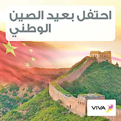 وبمناسبة العيد الوطني للصين، يسر VIVA أن تتقدم بأحر التهاني وأصدق التمنيات للشعب الصيني بأكمله ولأبناء الجالية في الكويت مؤكدة التزامها بأن تكون سباقة في تقديم كل ما هو جديد ومبتكر في عالم الاتصالات والعمل المستمر على منح عملائها تجربة فريدة لا تضاهى.