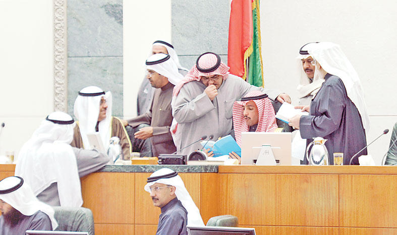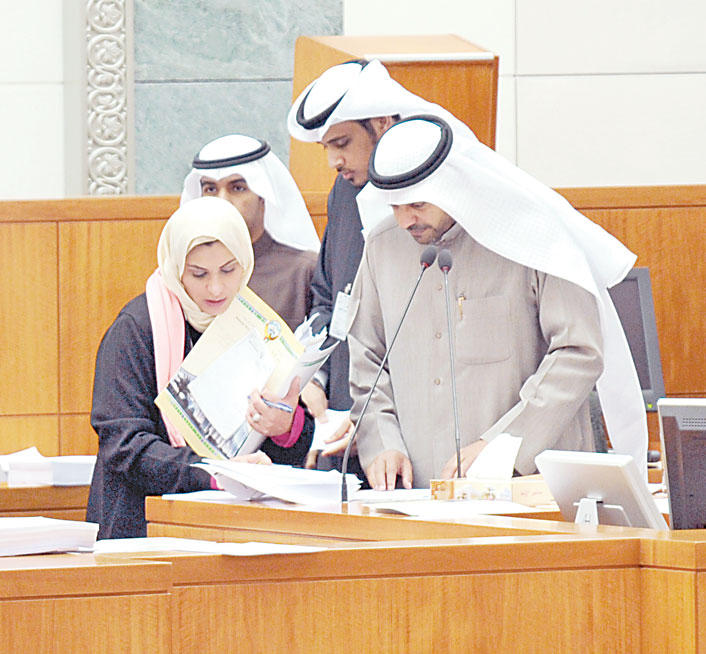 تمكن مجلس الأمة في جلسته امس، من إقرار قانون جمع الاسلحة في مداولته الاولى بالإجماع، وتعهد نائب رئيس الوزراء وزير الداخلية الشيخ محمد الخالد بالتزام العادات والتقاليد، وبما ينص عليه الدستور في تطبيقه، موضحاً أنه ستتم الاستعانة بنساء في دخول المنازل وستحاط عملية التفتيش بالسرية التامة. وفتح المجلس ملف قضية أموال التأمينات الاجتماعية التي اثارها في وقت سابق فهد الراشد، والمتورط فيها المدير السابق للمؤسسة العامة للتأمينات الاجتماعية، وأوصى في نهاية المناقشة، بمتابعة هذه الأموال في جميع الحسابات الدولية وإعادتها. وبناء على طلب وزيرة الشؤون الاجتماعية والعمل وزيرة الدولة لشؤون التخطيط والتنمية هند الصبيح، وافق المجلس على إعادة التقرير المتعلق بالاقتراح ومشروع القانون الخاص بحقوق وحماية الطفل الى لجنة شؤون المرأة والاسرة البرلمانية، حيث اعترضت الوزيرة عليه لتضمينه مواد تتعارض مع قوانين أقرت في السابق. وخلال الجلسة، ذكر وزير النفط وزير الدولة لشؤون مجلس الامة الدكتور علي العمير أن اسعار النفط انخفضت الى مستويات غير متوقعة.افتتح رئيس مجلس الامة مرزوق الغانم الجلسة عند الساعة التاسعة والنصف، وتلا الأمين العام أسماء الحضور والمعتذرين.وقال النائب عبدالله المعيوف انه بعد جلسة امس (امس الاول) تداول بعض وسائل التواصل الاجتماعي ان هناك تراشقا في الجلسة وسجالا، ونطالب الحكومة ان تحاسب هذا "المغرد" لوقف بث مثل هذه الاشاعات ونأمل أخذ الاجراءات القانونية.وقال النائب يوسف الزلزلة: اثني على ما قاله الاخ المعيوف، ونتمنى من مكتب المجلس ان يفند ما ذكر في بعض وسائل الاعلام التي تقصد تشويه صورة المجلس.من جانبه، قال النائب عبدالحميد دشتي: كشفت المغرد الذي يغرد بالضاحية وكشفت نيته، والحصانة رفعت وكل الاحترام للاخوة الاعضاء، ونطالب وزارة الداخلية باتخاذ الاجراء، ونعرف ان هذا محض افتراء، وهذا كله اخرطي باخرطي، واليوم يجب التصدي لهذا المغرد.وقال الغانم: الكل يعرف ان هذه ادوات لسراق المال العام، والكل يعرف محاولاتهم لاسقاط هذا المجلس، وهناك من كان يود ان يكون في جلسة امس (امس الاول) تجريح وتشويه، لكن لم يحدث، والشعب الكويتي فطن لاجندات سراق المال العام لاسقاط هذا المجلس.ولفت الغانم الى ان نتيجة رفع الحصانة عن عبدالحميد دشتي كانت بتأييد 35 وليس 33 كما ذكر بالخطأ في بيان بالجلسة.قانون هيئة النقلوانتقل المجلس لمناقشة تقرير لجنة المرافق بشأن تعديلات على قانون هيئة النقل في مداولته الثانية.وقال وزير الاشغال عبدالعزيز الابراهيم ان "الحكومة تجدد تحفظها عما أتى في المادة 5 من القانون ولم تكن تريد اعضاء متفرغين في مجلس الادارة، لكن من باب التعاون بين السلطتين سنصوت بالموافقة على القانون".بدوره طالب وزير الشباب الشيخ سلمان الحمود باستعجال مرسوم الرياضة، بشأن التعديلات على المرسوم رقم 42 لسنة 1978 لقانون الرياضة ووافق المجلس.وقال مقرر اللجنة الصحية النائب سعدون حماد ان التقرير موزع على النواب، ونرجو التصويت عليه، ووافق المجلس بالاجماع على تعديل قانون الرياضة.وقال الوزير الشيخ سلمان الحمود ان اقرار هذا القانون سيمهد لتطوير الرياضة وسنعمل على العمل بالقانون الجديد الذي سيحدث نقلة نوعية في الرياضة.صندوق النقد العربيوانتقل المجلس الى مناقشة قانون زيادة رأسمال صندوق النقد العربي حيث رفض النائب جمال العمر اقرار القانون دون مناقشة، مشيرا إلى انه «لا يمكن ان نصوت على القانون اذا لم تكن هناك مناقشة، وسأقف ضده إذا لم تقدم الحكومة مبرراتها».وعارض يوسف الزلزلة كلام العمر، مشيرا إلى ان «هذا القانون الذي وضع من قبل اللجنة المالية كان رائعا لكن يجب ان تستفيد الكويت كثيرا من هذا الصندوق، وليوظف اكبر عدد من الكويتيين».ووافق المجلس على القانون بـ34 عضوا وعدم موافقة 2 وامتناع 3 وتمت الموافقة على المشروع في المداولة الاولى، وبعدها طلب الغانم اجراء المداولة الثانية بناء على المادة 104 من اللائ