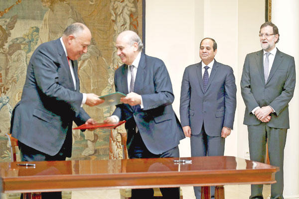أنهى الرئيس المصري عبدالفتاح السيسي أمس، جولة أوروبية استغرقت يومين، زار خلالها قبرص وإسبانيا، والتقى بكبار المسؤولين في مدريد، في مقدمتهم ملك إسبانيا فيليبي السادس، ورئيس الحكومة ماريانو راخوي، وشهدت الزيارة توقيع 5 اتفاقيات ومذكرات تفاهم في عدد من المجالات سبقها عقد قمة ثلاثية مع رئيسي اليونان وقبرص، في عاصمة الأخيرة أمس الأول، والتي شهدت توقيع السيسي ونظيره القبرصي نيكوس أناستاسيادس، ورئيس الحكومة اليونانية أليكسيس تسيبراس، على "إعلان نيقوسيا".وقال الزعماء الثلاثة في البيان أمس الأول، إنه تم الاتفاق على "زيادة التعاون في مجال مكافحة الإرهاب، والدفاع والأمن وبحث المعلومات ذات الصلة بمكافحة الإرهاب والتطرف العنيف بشكل مشترك، وتعزيز الأمن والاستقرار والازدهار على المدى الطويل".كما أشار البيان إلى اتفاق زعماء الدول الثلاث على استئناف المفاوضات بشأن ترسيم الحدود البحرية في منطقة شرق المتوسط، بقولهم :"إننا نقدر أن اكتشاف احتياطات مهمة من النفط والغاز في شرق المتوسط يمكن أن يمثل حافزاً للتعاون على المستوى الإقليمي، ونؤكد أن هذا التعاون ينبغي أن يكون قائماً على التزام دول المنطقة بالمبادئ المستقرة للقانون الدولي".وشدد البيان على احترام الدول الثلاث للطبيعة العالمية لمعاهدة الأمم المتحدة لقانون البحار، لتكون الأساس لاستئناف المفاوضات بشأن ترسيم الحدود البحرية التي لم يتم تعيينها حتى الآن. وهو ما قد يؤدي وفقاً لمراقبين، إلى الاصطدام بتركيا الدولة الغائبة عن المشاورات المصرية اليونانية القبرصية، على الرغم من أنها معنية بترسيم حدودها البحرية، إذ ترفض الاعتراف بمعاهدة الأمم المتحدة لقانون البحار، خشية أن يضر بمصالحها في شرق البحر المتوسط.وتناول إعلان نيقوسيا، الذي يعد امتداداً لإعلان القاهرة الصادر عن القمة الثلاثية في 8 نوفمبر الماضي، عدة ملفات ذات الاهتمام المشترك، أهمها الدعوة إلى تسوية عادلة وشاملة ودائمة للمشكلة القبرصية والتأكيد على ضرورة حل الأزمات العراقية والسورية واليمنية عن طريق الخيار السياسي، مع إبداء الدول الثلاث قلقها إزاء تدهور الوضع الأمني في ليبيا، مع المطالبة بتنفيذ استراتيجية لمكافحة الإرهاب بالتوازي مع إطلاق حوار سياسي بين فرقاء ليبيا.القبائلولا تزال عدة قبائل سيناوية تتصدرها قبيلة الترابين تتصدى لمواجهة تنظيم "ولاية سيناء" الفرع المصري لتنظيم "داعش"، على الرغم من الجدل الذي أثارته القبائل بإعلانها تشكيل ميليشيات مسلحة لمؤازرة الجيش والشرطة.وقال أحد زعامات الترابين المدعو موسى الدلح عبر حسابه الشخصي على "فيسبوك"، إن 5 أشخاص من أبناء القبيلة سلموا أنفسهم، بعدما كانوا على علاقة بـ "داعش". في سياق متصل أعلنت 23 قبيلة مصرية انضمامها إلى قبائل سيناء في حربها ضد "أنصار بيت المقدس".وأصدر حلف القبائل بشمال سيناء بياناً طالب فيه القبائل بـتطهير أنفسها من المنضمين لتنظيم أنصار بيت المقدس وطردهم، وإعلان توبة عناصر التنظيم، لئلا تتم ملاحقتهم عرفياً، بسبب الممارسات الإرهابية للتنظيم.وكانت قبيلة الترابين أصدرت أمس الأول، البيان رقم (6) قالت فيه: أولادنا يقفون جنباً إلى جنب مع قواتهم المسلحة والشرطة، يقومون بمحاصرة ودك بؤر وشراذم الإرهاب في كل بقعة وعلى كل شبر من أرض سيناء". وشبّه البيان داعش بكفار قريش، وأضاف "لم يدمر كفار قريش أنفسهم بيتاً مهجوراً ويفعلها الدواعش مدعين الإسلام وهم حقيقة الأمر يهدمونه ويسيئون إليه ويشوهون صورته وصورة كل مسلم في أذهان الآخرين".إرسال التعديلات وأعلن وزير العدالة الانتقالية وشؤون مجلس النواب المستشار إبراهيم الهنيدي، أنه تم إرسال حزمة تشريعات وقوانين الانتخابات بعد تعديلها إلى مجلس الدولة، موضحاً أن القوانين هي: "قانونا مباشرة الحقوق السياسية ومجلس النواب وقانون تقسيم الدوائر الانتخابية". وقال الهنيدي، في تصريحات للمحررين البرلمانيين، إنه تم الاستقرار على أن يكون عدد المقاعد الفردية 448 مقعدا
