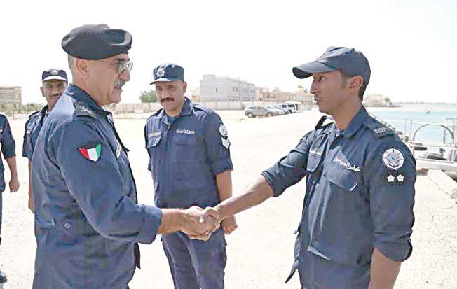 وأعرب عن سعادته لما شاهده من جاهزية واستعدادات وتفان في العمل، اضافة الى الأداء الطيب لحفظ الأمن والأمان للحدود البحرية والسواحل على مدار الساعة. وتأتي هذه الزيارة في اطار الزيارات التي يقوم بها قيادات وزارة الداخلية في الأعياد والمناسبات للاطمئنان على سير العمل والانضباط والحالة الأمنية في قطاعات الوزارة.وثمن منتسبو الإدارة العامة لخفر السواحل زيارة اللواء الشيخ محمد اليوسف التي تؤكد دعم قيادات الوزارة لرجال الأمن والتواصل معهم في أول وثاني أيام عيد الأضحى المبارك معتبرين الزيارة دافعا للاستمرار بمواصلة العمل بنفس القدر من الدقة والانضباط.شملت الجولة البحرية مركز الخيران الساحلي وجزيرة ام المرادم وجزيرة قاروه والدوريات البحرية بجزيرة كبر والمنشآت النفطية وجون الكويت والساحل الجنوبي ومركزي جزيرة وربه والصبيه الساحلي.