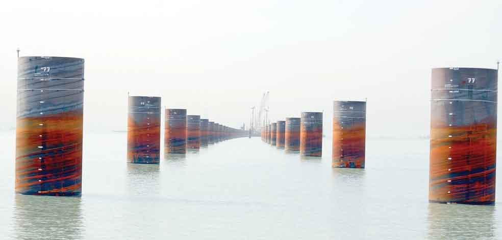 أكد وكيل وزارة الأشغال المساعد لقطاع الطرق المهندس أحمد الحصان، أن أعمال مشروع جسر جابر تسير وفق الجدول الزمني الموضوع، بل إن الإنجاز يتقدم هذا الجدول، لافتا إلى أن نسبة الإنجاز الحالية للجسر بلغت في نهاية شهر فبراير الجاري 28.24 في المئة.وقال الحصان لـ«الجريدة» ان نسبة إنجاز الجزيرتين في المشروع متقدمة كذلك، إذ تبلغ نسبة الانجاز في الجزيرة الاصطناعية الجنوبية 45 في المئة، وفي الشمالية 32 في المئة.ومن جانبها، أكدت مهندسة المشروع المهندسة مي المسعد، أنه تم فعليا إقامة 75 عمودا من أعمدة الجسر أي حوالي 5 في المئة من العدد الإجمالي لتلك الأعمدة، إضافة إلى أن الأسبوع المقبل سيشهد صب أول عارضة صندوقية مسبقة الصب في الجسر.وقالت المسعد في لقاء خاص مع «الجريدة» انه تم إنجاز 98 في المئة من أعمال التجريف والاستصلاح في منطقة الشويخ، وتم البدء في الأعمال الدائمة بالمشروع فجارٍ العمل بالأغلفة الحديدية (Steel Casing) وصب الخرسانة للركائز الدائمة للجسر (Piles) وأعمال الدعامات (Piers) بمنطقة تقاطع الشويخ.وأشارت إلى أن الجسر به مركزان للتحكم بالتعاون مع وزارة الداخلية، بحيث إن تعطلت، لا قدر الله، سيارة على الجسر، أو كان هناك جسم غريب أعلاه يتم التصرف بنظام إلكتروني متطور بالتنسيق مع «الداخلية» بشكل فوري.ولفتت إلى أن هناك تعاونا مع وزارات الدولة وجهاتها المختلفة بشكل دائم، إضافة إلى الحرص على تطبيق قرار مجلس الوزراء 691 الخاص بتضافر الجهود من أجل حل أي عقبات تواجه المشروع.الأعمال البحريةوأضافت أنه تم الانتهاء من أعمال الفحوصات الجيوتقنية للتربة عند جسر الصبية، للتأكد من خواص وعوامل التربة الطبيعية في البحر، كما تم الانتهاء أيضا من أعمال الموطن البيئي للأحياء المائية الجديد للروبيان لنقل المساكن الطبيعية الحالية (نسبة صب الكتل الخرسانية والتركيب 100 في المئة)، والانتهاء من زراعة الطحالب البحرية وإنتاج الشّعب المُرجانية لاستعمالها في الموطن البيئي للأحياء المائية الجديد للروبيان.وتابعت: تم البدء بالأعمال الدائمة للمشروع، فجار أعمال تركيب الأغلفة الحديدية (SteelCasing) للركائز المدفونة (Piles) وأعمال صب الخرسانة بالجسر الرئيسي وجسر الصبية.تقنيات الجسروأوضحت أن جسر جابر يتميز عن غيره من الجسور من خلال أمور عديدة، منها جزيرتاه، إضافة إلى الفتحة الملاحية ذات الشكل المميز، التي ستسمح بمرور السفن من أسفل الجسر بعرض 120 مترا وبارتفاع 23 مترا، فضلا عن أن كل اتجاه على مدى مسار الجسر يحتوي على 3 حارات مرورية وحارة طوارئ، كما ان السرعة التصميمية للجسر 120 كم في الساعة. وذكرت أن أعمال إنشاء الجسر تشتمل على تنفيذ 1500 من الركائز المدفونة (Piles) وتبلغ أطوالها أكثر من 50 مترا في بعض المواقع وتصل أقطارها إلى 3 أمتار، إضافة إلى أن المشروع يحتوي كذلك على نحو 1326 دعامة (Piers)، و1052 «كمرات» صندوقية سابقة الصب (Precast Box Girders) وتتراوح أطوالها بين 40 و60 مترا.وبينت أن المشروع سيشتمل على «مركز دائم للزوار ومحولات كهرباء، بالإضافة إلى أنظمة «ITS» و»SCADA» وهي عبارة عن نظم متكاملة للمراقبة والتحكم على طول مسار الجسر لسير المركبات.تحقيق رؤية سمو الأميروأشارت المهندسة المسعد أن الهدف من مشروع جسر جابر اختصار الوقت والمسافة من مدينة الكويت إلى مدينة الصبية، من ساعة ونصف إلى فترة زمنية لا تتعدى «25» دقيقة، لافتة إلى أن مدينة الصبية ستكون مدينة متكاملة تستوعب أكثر من 750 ألف نسمة، وحاليا يتم الإعداد لإنشاء مدينة الحرير وتنفيذها.وقالت ان «الجسر سيكون حلقة وصل بين العاصمة والصبية، كما ان إنشاءه في هذا التوقيت سيسهل عمليات إنشاء مدينة الصبية، إضافة إلى تشجيع المستثمرين للعمل في هذه المدينة الجديدة، وتشجيع الناس إلى الانتقال إليها، إضافة إلى تخفيف الزحام المروري عن مدينة الكويت». وأضافت أن الجسر سيمهد طريق التنمية الجديد، وسيحقق رؤية سمو أمير البلاد في تحويل الكويت إلى مركز مالي وتجاري عالمي.وأعربت المسعد عن شكرها للأمانة العامة لمجلس الوزر
