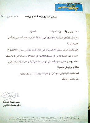 وذكرت اللجنة المنظمة في ردها على نادي السالمية أن تسجيل المحجبي جاء بناء على جواز سفر تونسي ساري المفعول وعقد مع نادي مكارم المهدية ساري المفعول ومعتمد من قبل الجامعة التونسية لكرة اليد، وهو ما يتوافق مع المعمول به في لوائح الاتحاد العربي لكرة اليد.