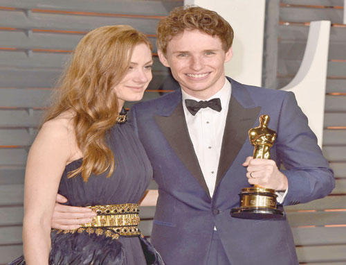 حقق الممثل البريطاني إيدي ريدماين (33 عاما) ثلاثية بفوزه بجائزة أوسكار أفضل ممثل، بعد نيله المكافأة نفسها في حفل غولدن غلوب، وبافتا عن دوره في فيلم "نظرية كل شيء"، الذي يؤدي فيه شخصية عالم الفيزياء الفلكية المشلول ستيفن هوكينغ، وبهذا التفوق يكون حقق الجوائز الأصعب عالمياً.ولم يكتف الممثل الشاب بهذا القدر، بل أضاف إليها جائزة أفضل ممثل التي تمنحها نقابة ممثلي السينما والتلفزيوني (ساغ).