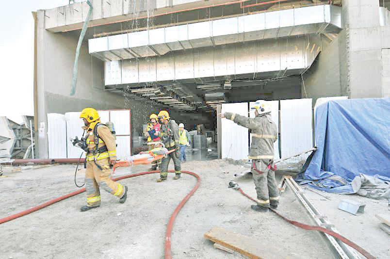 أقامت إدارة إطفاء الفروانية صباح أمس تمرينا عمليا لحريق في مدينة صباح السالم الجامعية بالشدادية، عبارة عن حريق بمبنى قيد الانشاء مكون من 4 ادوار وسرداب، في الدور الثاني.وشارك في التمرين مركز جليب الشيوخ ومركز العارضية الصناعية، وتواجد في موقع الحريق نائب المدير العام لشؤون المكافحة وتنمية الموارد البشرية العميد خالد المكراد، ومدير محافظة الفروانية العقيد حسين اسد، ورئيس مركز جليب الشيوخ المقدم نواف الشافي.
