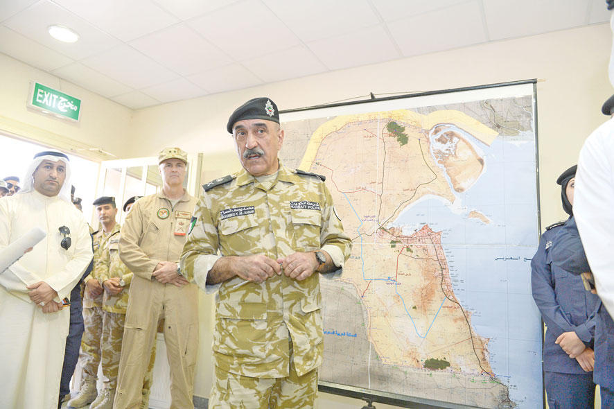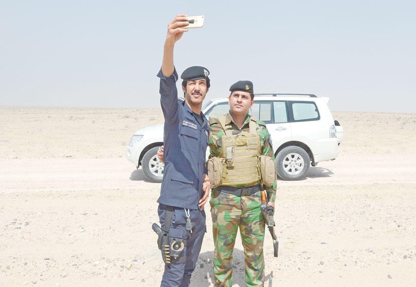 وذكر أن قوات أمن الحدود تنسق دورياً وبشكل كبير مع قوات التحالف ممثلة بالجيش الأميركي وهناك أيضاً ضابط ارتباط لقوات التحالف يوجد دائماً وميدانياً على طول الحدود البرية للبلاد.ولفت إلى أن التنسيق مع الجانب العراقي قائم بشكل مستمر، "وهناك تبادل للمعلومات عن الوضع الأمني في الجانبين لاسيما فيما يتعلق بعمليات التسلل التي أصبحت شبه معدومة، كما يمتد التنسيق إلى عملية تبادل المتسللين من الجانبين، إن وجدوا".ونفى اللواء اليوسف زيادة أعداد العسكريين على الحدود الشمالية مؤكداً أن الوضع الأمني آمن 100 في المئة مجدداً التأكيد على أن عمليات التسلل أصبحت من المستحيل.وشدد على أن المنظومة الأمنية كفيلة بضبط كل من تسول له نفسهاختراق الحدود الشمالية، مشيراً إلى أن الحدود مراقبة بأحدث التقنيات وكاميرات المراقبة الحرارية الثابتة والمتحركة والتي تفوقت على ما يستخدم من تقنيات تكنولوجية على الحدود المكسيكية الأميركية والتي اطلع عليها وفد أمني كويتي في زيارة ميدانية قبل عدة أشهر.ورداً على سؤال حول التهديدات الجماعات الإرهابية على الحدود الشمالية، قال اليوسف:" لم نلحظ أو نتلمس أي تهديد على حدودنا لذلك لم نحتج إلى استخدام الأسلحة الثقيلة حتى الآن، والتي هي من اختصاص قوات وزارة الدفاع التي ننسق معها يومياً.وأشار إلى أن هناك تعليمات واضحة وصريحة لرجال أمن الحدود بالتعامل الفوري والرادع لأي اختراق أمني على الحدود، موضحاً أن رجال أمن الحدود تمكنوا العام الماضي من إحباط عملية تهريب أسلحة صيد "شوزن" وهي العملية الوحيدة لمحاولة تهريب أسلحة عبر الحدود وألقي القبض من خلالها على تسعة أشخاص.وحول ما أشيع عن استلام وزارة الدفاع للحدود الشمالية والجنوبية في البلاد، أكد اليوسف عدم وجود أي قرار بهذا الشأن، "ونحن سمعنا من وسائل الإعلام هذه المعلومات".وأضاف أنه في السابق كانت هناك قوة سلاح الحدود تتبع وزارة الدفاع وألغيت بعد التحرير، "وليس لدي أي فكرة حول إعادة تشكيل هذه القوة".ولفت إلى أن الهدف من زيارة وسائل الإعلام للحدود هو عدم التشكيك في الوضع الأمني على الحدود الشمالية ومنعاً للشائعات، مؤكداً أن أمن الحدود يعتمد أساساً على العنصر البشري الذي يعمل على مدار الساعة مع الأجهزة المتطورة التي تتمكن من رصد الأهداف المعادية على بعد ١٠ كيلومترات.وحول الوضع العام على الحدود الشمالية فيما يتعلق بتكنولوجيا المعلومات وصيانة الخندق الحدودي ومعالجة بعض السلبيات التي تظهر بين حين وآخر، قال اليوسف: إننا نسعى جاهدين إلى التغلب على هذه المشكلات، وهي محدودة للغاية وخصوصاً فيما يتعلق بالتكنولوجيا الأمنية ونظام السلك الأمني.ولفت إلى أن وزارة الدفاع تعمل حالياً على إعادة تأهيل الخندق الحدودي بعد أن تعرض لعوامل التعرية مثل ردم أجزاء منه بفعل السيول وموجات الغبار.وعن وجود حالات التسلل في منطقة المثلث الحدودي التي كانت تشكل ثغرة أمنية ومعبراً للمتسللين، أفاد بأن هذا الكلام أصبح من الماضي بعد تجاوز وتلافي الخلل الموجود، "والتنسيق مع أشقائنا في الجانبين السعودي والعراقي، واللذين يعانون المشكلة نفسها، لكن تضافر الجهود والتنسيق الدائم قضى على هذه الثغرة الأمنية".تنسيق وهدوء من جانبه، قال ضابط الارتباط للقوات الأميركية على الحدود الشمالية الجنرال وليمز، إن الوضع الأمني في الحدود الشمالية آمن ولا وجود لأي تهديدات، مشيراً إلى أن هناك تنسيقاً كبيراً بين قوات التحالف و قوات الشرطة الكويتية وهي المسؤولة عن الوضع الأمني الحدودي.من جهته، أكد آمر اللواء الرابع عشر في الجيش العراقي العقيد جبر درباي وادي الذي التقته وسائل الإعلام عند البايب الحدودي في الجانب العراقي، إن التنسيق والتعاون الأمني مع الجانب الكويتي علىأعلى مستوى، مشيراً إلى أن عملية تبادل المعلومات تسير بشكل يومي.وقال درباي: اطمئنوا فالأوضاع الأمنية هادئة على الحدود العراقية الكويتية مؤكداً أن الجماعات الإرهابية لا تستطيع الوصول إلى الحدود 