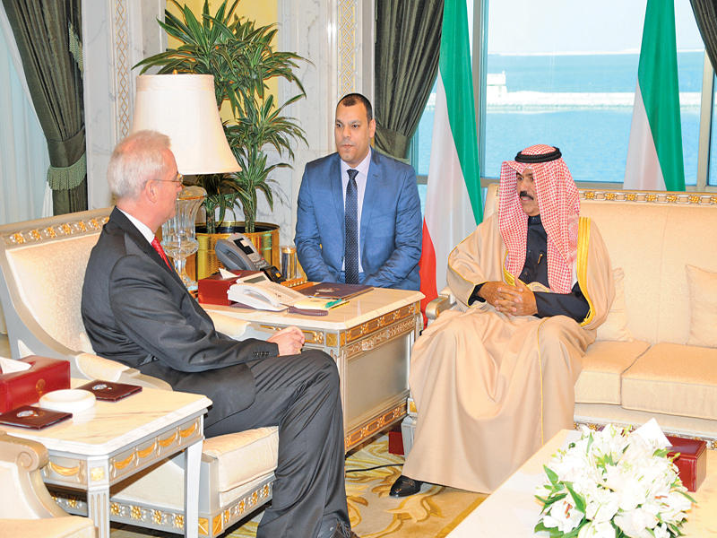 استقبل سمو ولي العهد الشيخ نواف الأحمد بقصر السيف، صباح أمس، النائب الأول لرئيس مجلس الوزراء وزير الخارجية الشيخ صباح الخالد.واستقبل سمو ولي العهد سفير الجمهورية التونسية لدى الكويت أحمد بن الصغير، وذلك بمناسبة توليه مهام منصبه الجديد سفيراً لبلاده.