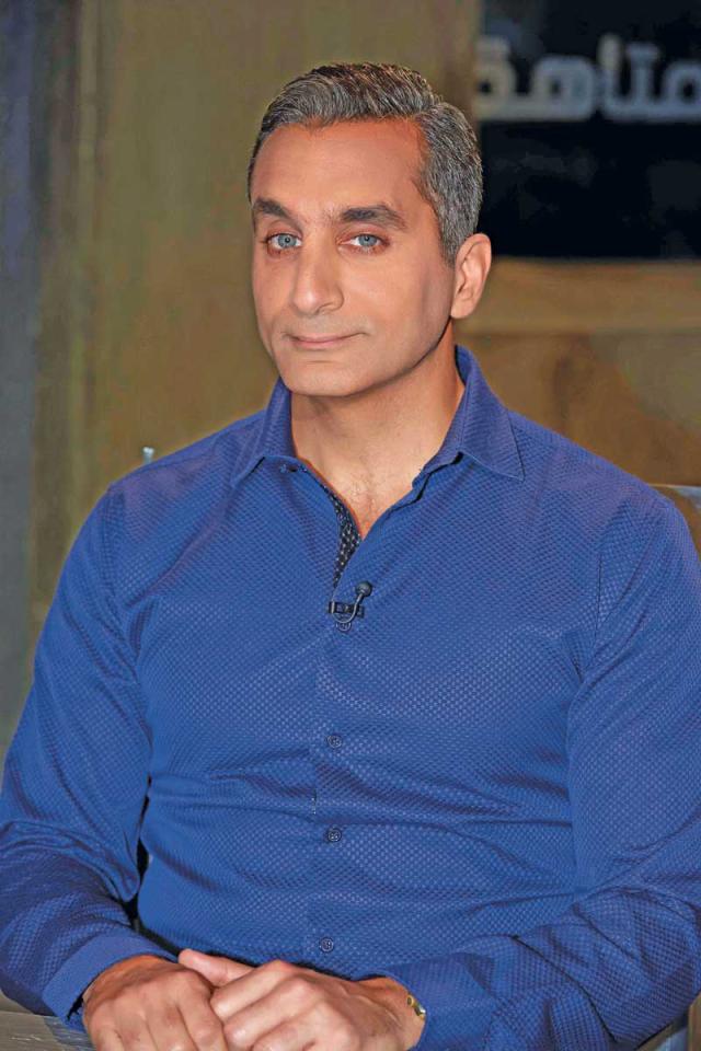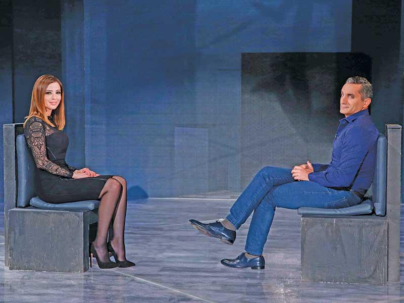 مواقف{فن السخرية هدفه وضع الإصبع على الجرح وتصحيح خلل ما وليس إضحاك الناس فحسب}، هكذا عرّف باسم يوسف الأسلوب الذي اعتمده في برنامجه، مشدداً على أنه لم يتصيّد أخطاء الآخرين بل تابع الحوادث والواقع ضمن فيديوهات قصيرة متداولة بين الناس ويتم التعليق عليها، معترفاً بأن السخرية قاسية أحياناً، لكن على الناس تقبلها لأنها تصب في المصلحة العامّة.رفض تصنيفه بالخبيث وأكّد أنه لم يقدّم تنازلات بهدف الوصول إلى غاية معينة، وحدها راحة البال تنازل عنها حين قرر خوض مجال الإعلام، لأنه سيكون بطبيعة الحال عرضة للانتقادات والحروب.شدّد على أنه لا يتعمّد إثبات شجاعته في حواراته أو في عمله، معتبراً أن {السعي إلى إثبات أمر أو صفة معينة في الشخصية، يدلّ على عقدة نقص، والحمد الله أنا بعيد عن هذه العقد}. وحين سألته الكيلاني حول السبب الذي دفعه لتلبية دعوتها للمشاركة في البرنامج أجاب ممازحاً: {انتم أغريتموني بالمال وأنا وافقت}، ليعود ويخاطبها قائلاً: {لطالما شاهدتك قبل دخولي مجال الإعلام وجئت كي أعرف كيف تحافظين على نفسك بهذا الرونق والشباب الدائم}. طفولةتحدث عن طفولته وعن والده الذي كان رجل قانون، لكنه كان، في الوقت نفسه، بسيطاً ويسهل التعاطي معه، أما صرامته فانحصرت في ساحة المحكمة.حول التهريج والفكاهة في شخصيته شدد على أنه لم يكن يملكهما بدرجات عالية في صغره، {بل كان في المدرسة من يتفوق عليّ بهما، يعتقد الناس أن الشخصية التي شاهدوني فيها في {البرنامج} ولدت معي، لكن العكس صحيح. كنت أحب الدراسة والأوّل في صفوفي، وبعدما أنهيت دراستي في المدرسة تخصصت في الطب وتخرجت طبيباً، وحين خضت مجال الإعلام لم يكن هدفي إثبات حفّة ظلّي بل تقديم عمل جيد ومختلف، فاطلعت على البرامج الأجنبية المشابهة واجتهدنا كفريق عمل متكامل. اعتبر أن نجاح البرنامج يعود 90% منه إلى هذا الاجتهاد و10% إلى خفّة الدم والفكاهة. سخريةرفض باسم يوسف تفسير معنى {الغلط والعيب} معتبراً أن هذه أمور نسبية وتختلف بحسب المجتمع والتربية والمفاهيم. أما حول السخرية وما إذا كانت تزيد من شعبية الرمز أم تقللها أجاب: {حسب الرمز، فلو تعامل مع هذه السخرية على أنها نقد ضروري ومفيد للمجتمع فذلك يزيد من شعبيته. يثبت الرمز الذي يظهر في هكذا برامج لأفراد مجتمعه أنه بشر مثلهم وألا حواجز بينه وبينهم}. حول آمال الناس التي وضعوها عليه قال: {اعتقدوا أنني سأحل مشاكلهم لكني طالما أكدت أنني لست سياسياً ووظيفتي محددة وينتهي دوري مع انتهاء البرنامج، ثم لا اعتبر نفسي ثورياً أو مناضلاً، أنا مجرد إعلامي ساخر يتحدث عن قضايا سياسية وحياتية بطريقته الخاصّة}.حول البعض الذي غيّر رأيه بالبرنامج بعدما كان معجباً به قال: {لا يؤمن هؤلاء أن ثمة من يملك رأياً حراً، بل ثمة من يدفع ويستخدم هذا الرأي ويوجهه}. سياسةأشار يوسف إلى أن الاستهزاء بمن هو خارج السلطة أو في موقف ضعيف، ليس من شيم الشهامة والكرامة، والدليل عدم تطرقه إلى موضوع الرئيس المصري السابق حسني مبارك ونجليه. سخر يوسف من النظريات التي اتهمته بالتآمر وبأن جهات معينة تستخدمه وأضاف: {وصل بهم الأمر إلى اعتبار أن أميركا تستخدمني لتنفيذ مشروعها في مصر، وتحدث أحد التحقيقات الصحافية أن وكالة الاستخبارات الأميركية أرسلت وفدا إلى مصر لتدريبي لأسقط النظام من خلال {السخرية}، واستخدمت استضافتي لجون ستيوارت لهذا الهدف، وأتساءل هنا: في حال كان هذا الكلام صحيحا ألم يكن أولى بالمخابرات المصرية القبض علي بتهمة الخيانة العظمى؟}.أوضح أن الإخوان حين استلموا السلطة حاولوا إسكاته لكنهم أخفقوا، على عكس النظام الحالي، وأن جهات عدة طلبت منه تصوير البرنامج خارج مصر في أوروبا وأميركا ولكنه رفض، لاعتباره أن هذا البرنامج مصري صرف ويصوّر ضمن الأراضي المصرية التي هو خارجها راهنا.خارج مصرمنذ 13 شهراً وباسم يوسف خارج مصر، وحول القضية المرفوعة ضدّه أشار إلى أنه لم يبع أملاكه في مصر وخروجه منها نتيجة عقل وليس جيناً.تابع: {يبقى الاستئناف في قضية ا