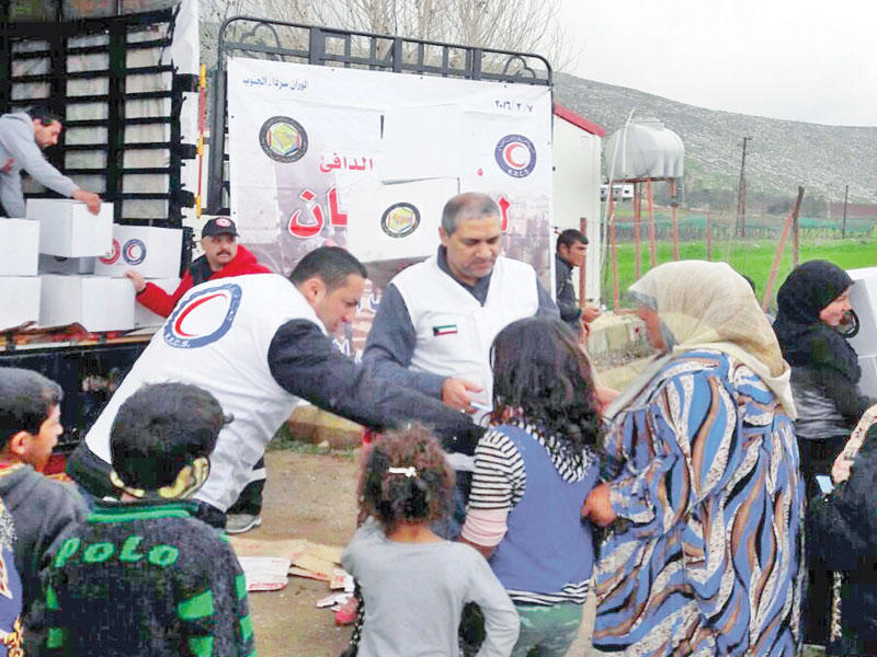 أعلنت جمعية الهلال الاحمر الكويتي، امس، توزيع دفعة جديدة من المساعدات الاغاثية على عدد من الاسر السورية النازحة في بلدة (سردا) جنوبي لبنان، في اطار حملة مساعداتها الانسانية العاجلة للنازحين السوريين في مختلف مناطق لبنان.وقال رئيس الفريق الميداني للجمعية، نبيل بوفتين، في تصريح لـ"كونا"، انه تم توزيع مساعدات اغاثية شملت 350 طردا غذائيا، و350 طردا من مواد التنظيف على الاسر السورية النازحة في بلدة (سردا) الجنوبية المتاخمة للحدود الفلسطينية.