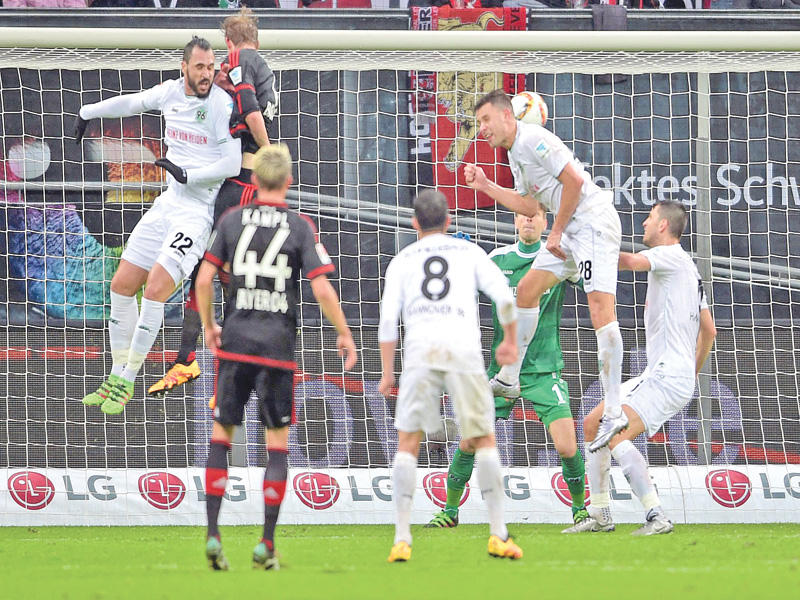 وافتتح افضل لاعب في افريقيا لعام 2015 التسجيل، بعدما ارتقى لكرة عرضية ارسلها البولندي لوكاس بيشتشيك، وتابعها برأسه في مرمى الحارس النمسوي رمضان أوغان (77).واضاف الغابوني الهدف الثاني، بعدما تابع كرة من الارجنتيني غونزالو كاسترو في اسفل الزاوية اليسرى (86).وارتفع رصيد دورتموند إلى 44 نقطة، وبات على بُعد 5 نقاط من بايرن ميونيخ، المتصدر وبطل المواسم الثلاثة السابقة، الذي يستضيف غدا هوفنهايم، صاحب المركز السابع عشر قبل الاخير، وبقي اينغولستات عاشرا وله 23 نقطة.وعلى ملعب فيزر شتاديون، وأمام اكثر من 40 الف متفرج، فرَّط هرتا برلين الثالث، في فوز كان في متناوله، بعد ان تقدم على مضيفه فيردر بريمن 3-1، لكنه لم يستطع الحفاظ على هذا التقدم، وارتضى بنقطة بتعادله معه 3-3، فصار رصيده 34 نقطة، مقابل 19 لمنافسه صاحب المركز الخامس عشر. وعلى ملعب باير ارينا، وأمام نحو 29 الف متفرج، فاز باير ليفركوزن على ضيفه هانوفر الاخير 3-صفر، رافعا رصيده إلى 31 نقطة نقلته إلى المركز الرابع.وطال انتظار اصحاب الارض، بعد محاولات حثيثة، وأحيانا خطرة لزيارة الشباك، حتى الدقيقة 44، بعد ركلة ركنية نفذها التركي هاكان جالهان اوغلو، وتابعها ستيفان كيسلينغ برأسه من زاوية مغلقة استقرت على يسار الحارس رون روبرت تسيلر.وفي الشوط الثاني، حصل كيسلينغ على ركلة جزاء، بعد مخاشنته من الياباني هيروكي ساكاي، انبرى لها المكسيكي خافيير هرنانديز "تشيتشاريتو" بنجاح (63).وأكمل تشيتشاريتو الثلاثية، بعد ان قاد كيفن كامبل هجمة معاكسة، وارسل له كرة داخل المنطقة تابعها بنجاح في الشباك (87)، مسجلا هدفه الثالث عشر في البطولة.بدوره، تقدم شالكه إلى المركز الخامس، بعد فوزه على ضيفه دارمشتات الصاعد حديثا 2-صفر، رافعا رصيده إلى 30 نقطة.وتعادل اوغسبورغ مع اينتراخت فرانكفورت صفر-صفر، فأصبح رصيد كل منهما 21 نقطة، ويتقدم الاول على الثاني بفارق الاهداف.