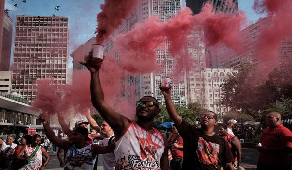 نزل اليسار البرازيلي رافعا الاعلام الحمراء الى الشوارع الخميس للتظاهر ضد اجراءات لاقالة الرئيسة ديلما روسيف التي تواجه خطرا كبيرا بعد انتقال الوسطيين الذين كانوا يشكلون دعامة ائتلافها الحاكم الى المعارضة.