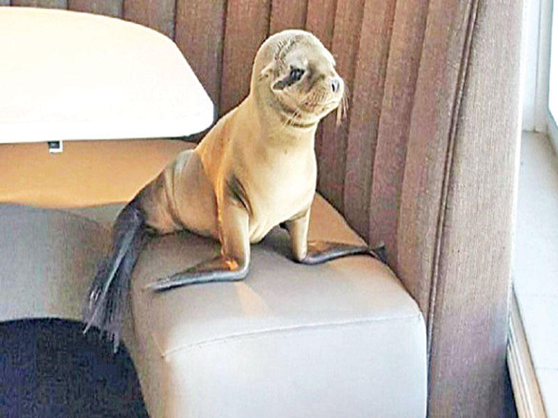 شق حيوان جائع من فصيلة أسد البحر طريقه نحو مطعم راق مطل على الشاطئ قرب مدينة سان دييغو في كاليفورنيا غرب الولايات المتحدة، حيث أخذ قسطاً من الراحة على مقعد مريح قبل إغاثته من جانب عناصر هيئة حماية الحيوانات.فقد عثر أفراد الطاقم المسؤول عن التنظيفات في مطعم "ذي مارين روم" الواقع على شاطئ لا جولا الخميس على صغير أسد البحر هذا.