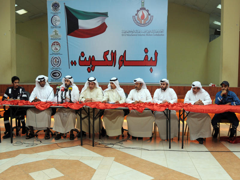 دعت الجمعية العمومية غير العادية لاتحاد عمال البترول وصناعة البتروكيماويات إلى إضراب شامل للقطاع النفطي يوم الأحد المقبل 17 الجاري، في تمام الساعة 7.00 صباحا، لحين تحقيق مجموعة من المطالب.وحددت الجمعية العمومية الــتي عقــــــــدت أمـــــــس مطالبهــــــــا في 3 بنود هي:1 - إلغاء ووقف كل القرارات التي رفعت لوزير النفط لاعتمادها والتي تمس حقوق ومكتسبات العمال التي نصت عليها لوائح العمل والاتفاقيات العمالية والاحكام القضائية.2 - المشاركة في لجنة مشتركة مع مؤسسة البترول الكويتية لإيجاد سبل للترشيد بعيداً عن حقوق ومكتسبات العمال.3 - العمل الجاد من الطرفين لاستثناء القطاع النفطي من مشروع البديل الاستراتيجي.العسعوسي: خطط بديلةاعتبر نائب الرئيس التنفيذي للخدمات المساندة في شركة البترول الوطنية الكويتية م. خالد العسعوسي أن الشركة جاهزة بخطط بديلة، في حال تم تنفيذ الإضراب الذي هددت نقابات عمال البترول بتنفيذه، بعد فشل اجتماعها مع نائب رئيس الوزراء وزير المالية وزير النفط بالوكالة أنس الصالح.وقال «دائما نخطط لأسوأ الاحتمالات... إذا صار هناك إضراب فنحن عندنا خطط استراتيجية للتعامل مع هذا النوع من الأزمات».وأضاف «إذا اضطررنا فسيكون هناك إغلاق لبعض الوحدات غير الفعالة... لكن الإنتاج للتصدير العالمي والاستهلاك المحلي لن يتأثر». موضحا أن الخطط البديلة تتضمن الاستعانة بالعمال غير المضربين والعمال الأجانب والمتقاعدين. القحطاني: تخبط حكوميمن جهته، قال رئيس اتحاد عمال البترول وصناعة البتروكيماويات سيف القحطاني إنه يتضح أن ما تمر به البلاد من أزمة تلو الاخرى يثبت بمــــا لا يدعو للشك، التخبط الحكومي في إدارة الأزمات وافتعالها وعدم القدرة على وضع الحلول العلمية المناسبة، وعلى سبيل المثال ما تم بعد هبوط اسعار النفط، نجد الحكومة تتبنى وثيقة اصلاح اقتصادية تعتمد في المقام الاول على مس جيب المواطن محدود الدخل، والانتقاص من حقوق ومكتسبات الطبقة العاملة، وذلك من خلال إلغاء الدعم على السلع الاستهلاكية الاساسية ورفع تسعيرة الكهرباء والماء، ومشتقات النفط، وتخصيص الشركات الحكومية ذات الربحية العالية، وانتقاص مميزات وحقوق عمال القطاع النفطي.وأضاف «إننا نعول على جميع مكونات الشعب في ضرورة المشاركة في تبني وثيقة اصلاح اقتصادي شاملة وحقيقية تنوع مصادر الدخل وتعظم الايرادات وتحمي حقوق محدودي الدخل وحقوق ومكتسبات الطبقة العاملة، كما نعول على الاخوة ايضا اعضاء مجلس الامة في التصدي لوثيقة الحكومة الاصلاحية ورفض شرائح الكهرباء والتي ستعرض على المجلس في جلسته المنعقدة اليوم وضرورة وضع المواطن البسيط نصب أعينهم والقيام بدورهم بحماية حقوقه».وشدد على ان اتحاد عمال البترول ونقاباته يدعوان جميع مكونات الشعب للمشاركة الفعالة والوقوف صفا واحدا تجاه العبث بحقوق ومكتسبات عمال القطاع النفطي وعدم المساس بجيب المواطن محدود الدخل، لافتا إلى ان ما تمر به البلاد من ازمة اقتصادية لا يخفى اثرها على الجميع أمر يتطلب من جميع مكونات الشعب المشاركة بكل فئاته وشرائحه في تبني وثيقة اصلاح اقتصادي شامل وكامل على مستوى البلاد، وذلك بعد فشل الحكومة في القيام بدورها من حيث ايجاد مصادر للدخل وتنويعه وتعظيم ايرادات الدولة.الهاجري: صد الهجمةمن جانبه، قال رئيس نقابة العاملين في شركة البترول الوطنية محمد الهاجري إن الاتحاد والنقابات يحاولان صد الهجمة للانتقاص من حقوق العمال، مشيرا الى ان مؤسسة البترول هي من تبرع لانتقاص حقوق العمال.وأضاف الهاجري، في تصريحات صحافية على هامش اجتماع الجمعية العمومية لاتحاد البترول، أن الوثيقة الاقتصادية في البند الثاني تشير الى ان مجلس الوزراء طالبها بالاصلاح المالي وترشيد النفقات في المهمات الرسمية والخارجية وتقليص اللجان وخفض المكافآت، مؤكدا ان المجلس لم يطلب انتقاص حقوق ومزايا الموظفين ولا انتقاص الدرجات ولا تخفيض العلاوات السنوية.وأشار الى ان الاتحاد يداف