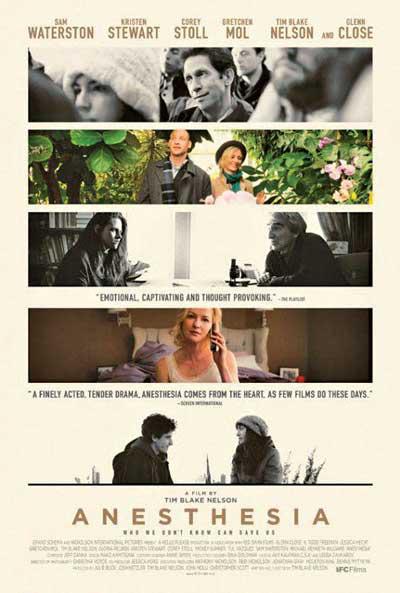 حوار باهت وتكرار تكمن المفارفة في Anesthesia في أن هذا الفيلم يعتمد التفاعل والترابط كآلية لسرد قصته، إلا أن ما من ترابط وتفاعل بين شخصياته. فلا تشكل هذه الشخصيات أناساً بقدر ما هي وسيلة للتعبير عن فكرة. بالإضافة إلى ذلك، يفتقر الحوار إلى الإتقان. فنرى كل شخصية وهي تتألم فيما يلقي بروفسور واترسون محاضرة توضح بشكل جلي محاور الفيلم. ولا يساعد هذا بدوره نسيج الشخصيات في التشابك والتفاعل.قدّم نيلسون الذي يشتهر بأدائه بعض الشخصيات المضحكة والمحببة على الشاشة (O, Brother, Where Art Thou? وThe Unbreakable Kimmy Schmidt)، أفلاماً مميزة ككاتب ومخرج (يُعتبر الفيلم الفكاهي المميز Leaves of Grass جوهرة لم تحظَ بأهمية كافية). لكن Anesthesia يبدو أشبه بفيلم شاهدته من قبل.