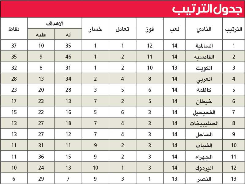 واصل السالمية تربعه على قمة دوري «ڤيڤا» بفوز مستحق على كاظمة، بينما انفرد القادسية بالمركز الثاني بفوزه على الساحل، واستغلاله غياب الكويت عن الجولة الـ15 ضمن منافسات البطولة، والتي عادت خلالها الأهداف الغزيرة.
