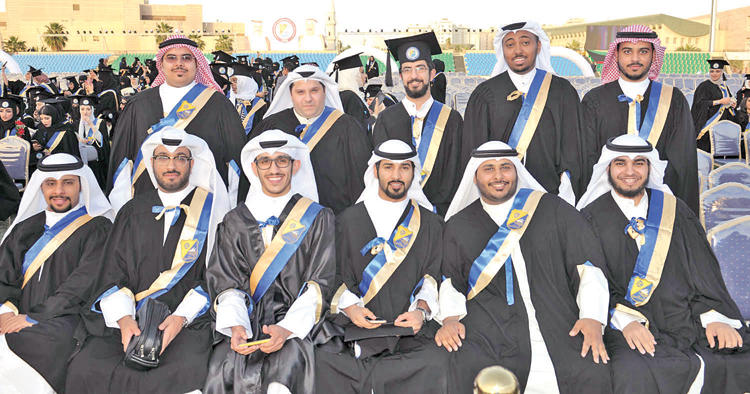 احتفلت جامعة الكويت بتكريم 5473 خريجاً وخريجة في حفل التخرج السنوي الموحد للدفعة الـ45، لعام 2014 /2015، برعاية سمو ولي العهد الشيخ نواف الأحمد، أمس، بالاستاد الرياضي في الحرم الجامعي.