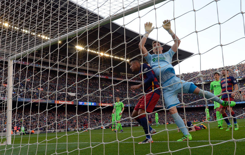عادل برشلونة رقمه القياسي بالانتصار في 12 مباراة متتالية في دوري الدرجة الأولى الاسباني لكرة القدم بفضل أهداف ليونيل ميسي ونيمار في الفوز الساحق 6-صفر على خيتافي باستاد نو كامب اليوم السبت.