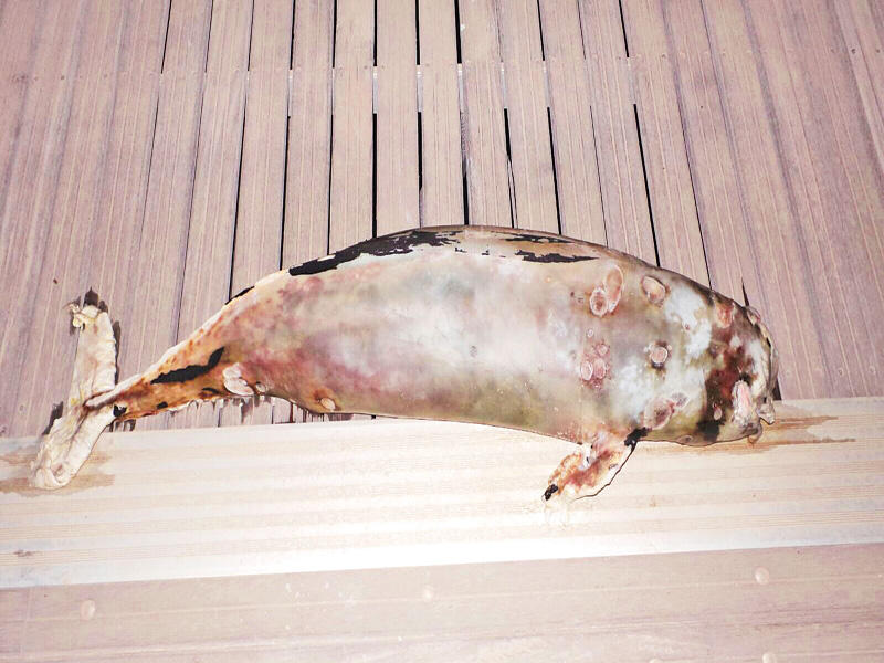 «البيئة» تنتشل كائناً بحرياً نافقاً في مسنة الفنطاس